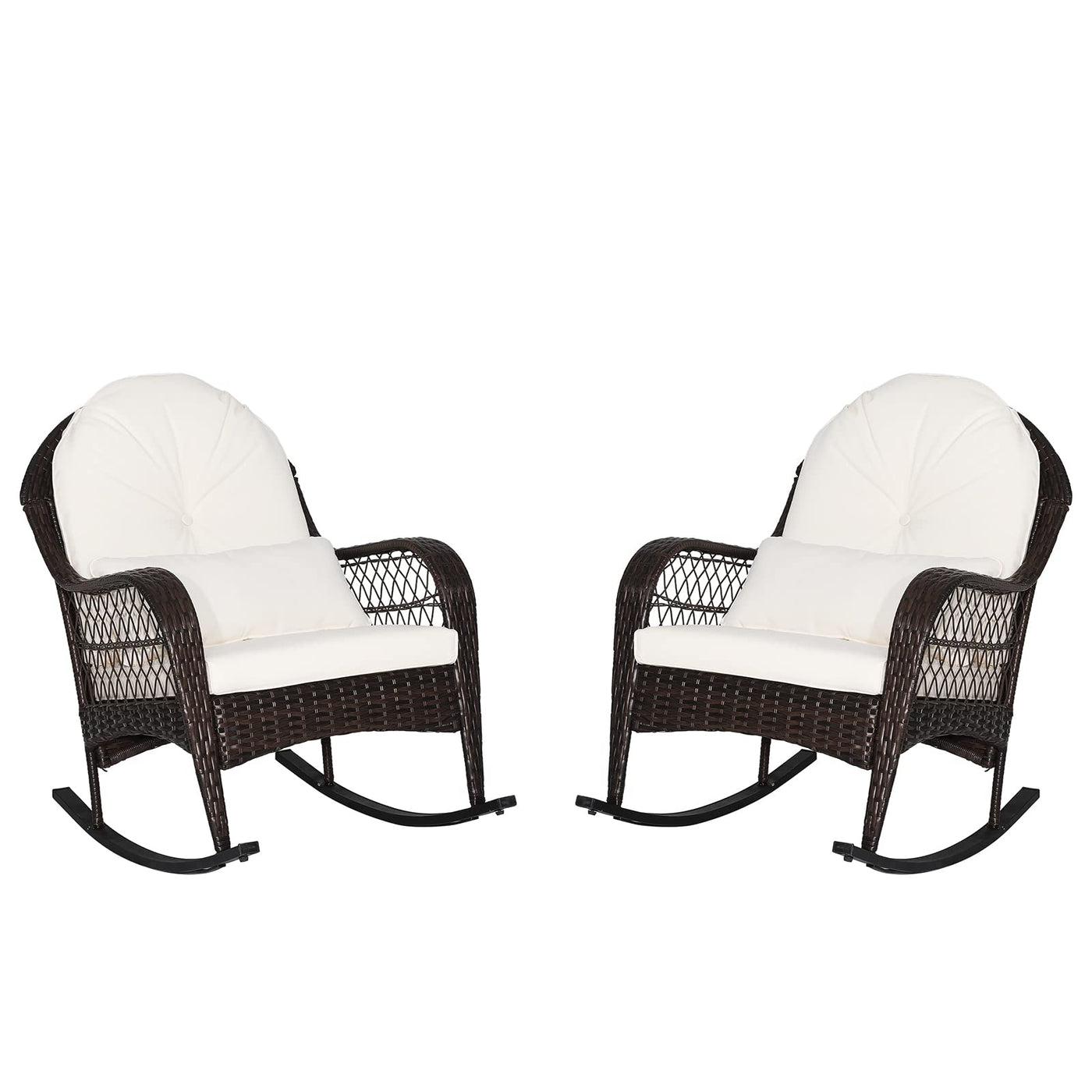 Oralner Patio Wicker Rocking Chair, Outdoor Pe Rattan Rocker With Seat And Back Cushion, Waist Pillow, Armrests, Garden Chair For Porch, Backyard, Poolside, Deck (2, Off White)