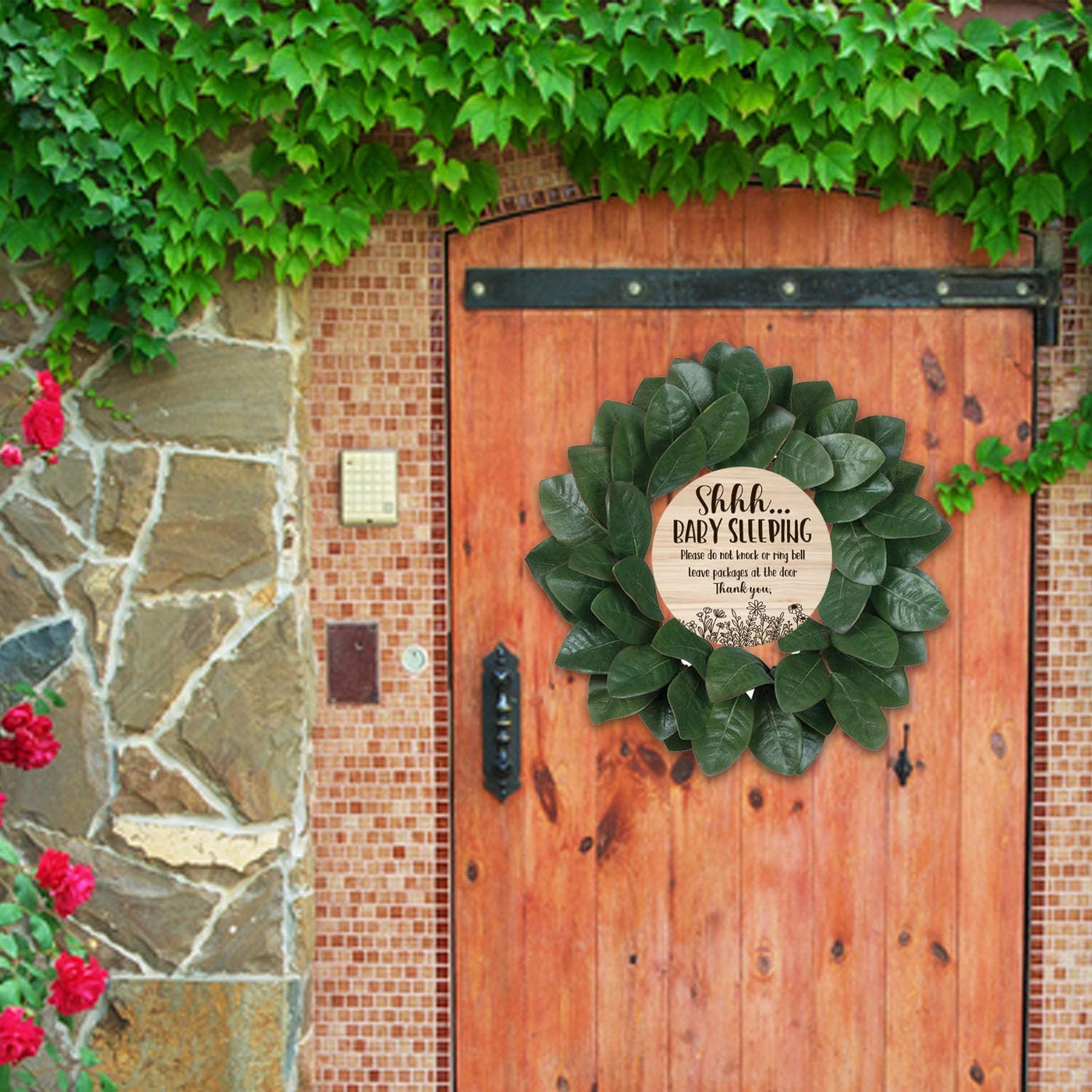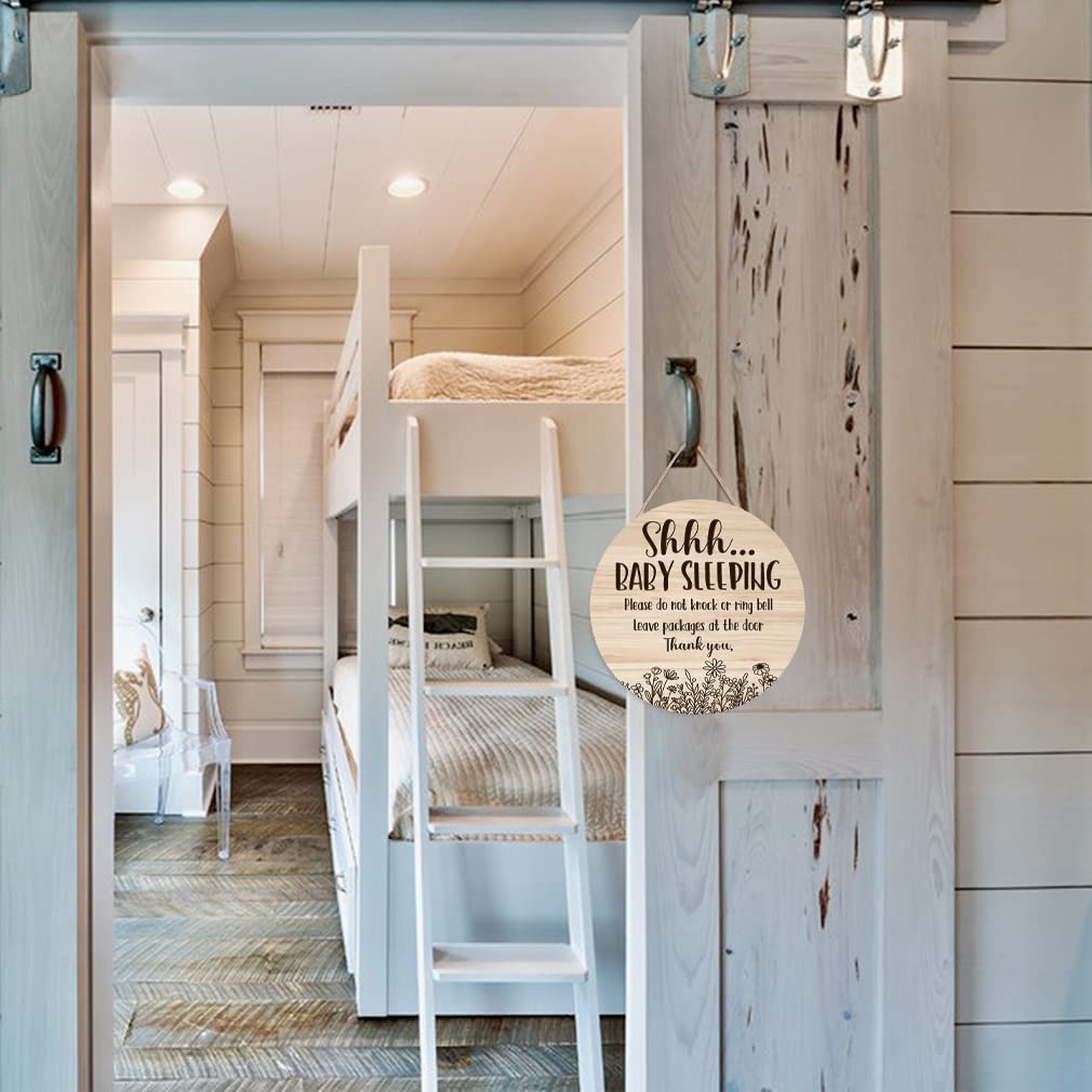 Shhh... Baby Sleeping Hanging Sign Plaque, Do Not Knock Or Ring The Bell, Round Sturdy Wooden Door Hanger For Baby Room, Nursery