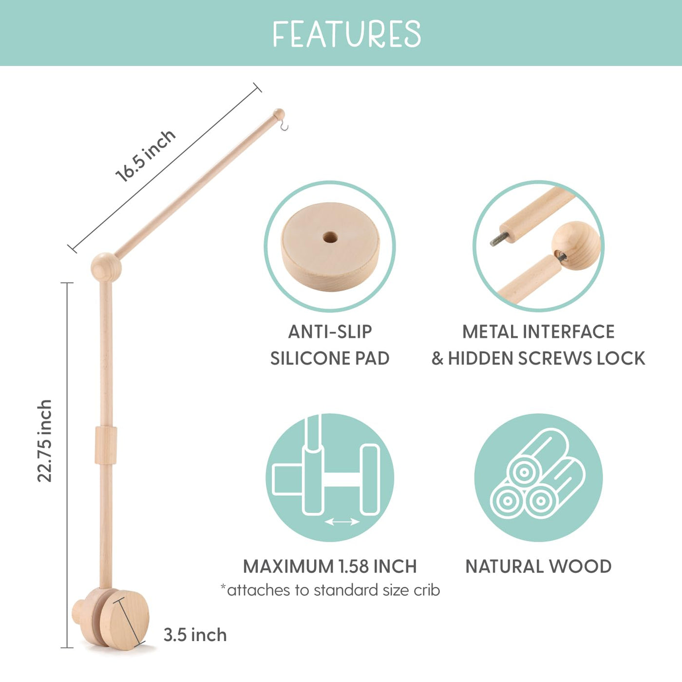 Q: Is the crib mobile easy to install and move?A: Yes, the crib mobile is designed for quick setup and fits standard-size cribs. It also features a detachable arm, making it easy to move or store whenever you want to refresh your nursery decor.