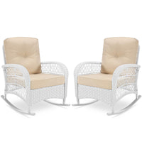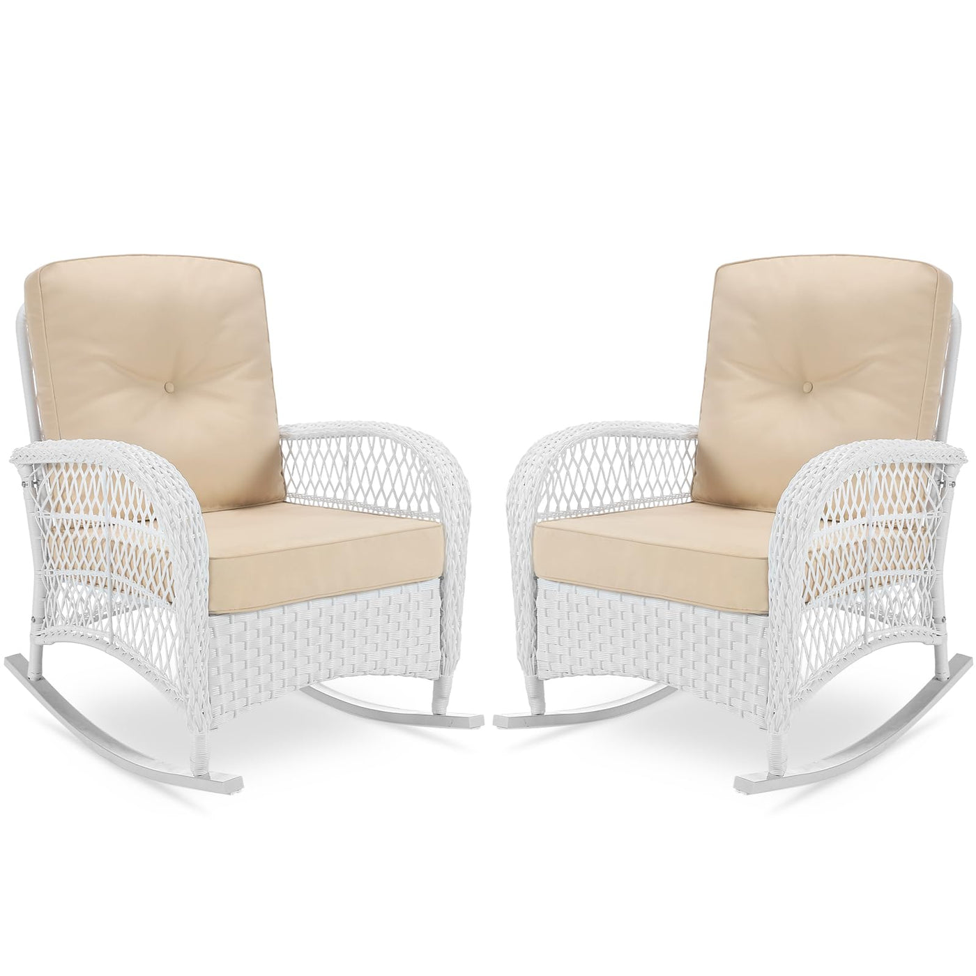 ?Handmade Resin Wicker?The White Rocking Chair Is Made Of High-Quality Pe Wicker, Making It All-Weather Resistant For Rain, Wind, And Hot Sun, Not Easy To Fade And Lose Luster. The Metal Frame To Be Solid And Rust-Resistant For Long-Time Outdoor Use. | ?Safe Rocking Motion?This Rattan Chair Is Finished With A Gentle Rocking Design, Allowing For Unassisted Smooth And Balanced Deep Or Light Rocking Without The Need For Constant Pushing. You Don’T Need To Worry About Falling Down From Chair While Swaying. | ?Thick Cushion?Rocking Patio Chair With Thickened Cushions Give You Better Support For Your Whole Body, Bottom Cushion Has Removable Zipper For Easy Washing, Which Is Easy To Clean And Gorgeous And Durable For Long-Lasting. | ?Modern Atyle?Ergonomic Backrest And Wide Armrest Providing The Comfort Desired By Rocking Chairs, Which Is A Great Addition Not Only For Your Yard, Garden And Porch, But Also For Your Indoor Area Like Living Room And Bedroom. | ?Easy Assembly?Overall Dimension: 27”(L) ×32.5”(W) ×35 ”(H); Weight Capacity:350Lbs. All Of The Instructions And Hardware Needed For Assembly Are Included. Best Of All? An Installation Video Is Available On Our Homepage. Please Contact Us For Any Damage, Missing Parts Or Other Product Quality And Assembly Issues. We Will Get Back To You Within 24 Hours Until The Problem Is Resolved. | ?Notice?While We Strive To Accurately Represent The Color Of Our Products, There May Be Slight Variations Due To Differences In Monitor Settings And Lighting. Please Refer To The Actual Product Received.
