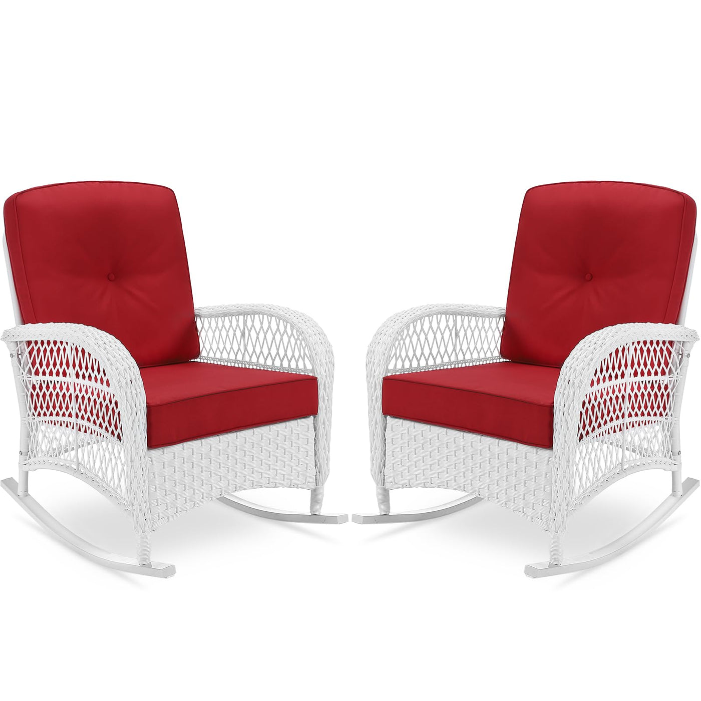 ?Handmade Resin Wicker?The White Rocking Chair Is Made Of High-Quality Pe Wicker, Making It All-Weather Resistant For Rain, Wind, And Hot Sun, Not Easy To Fade And Lose Luster. The Metal Frame To Be Solid And Rust-Resistant For Long-Time Outdoor Use. | ?Safe Rocking Motion?This Rattan Chair Is Finished With A Gentle Rocking Design, Allowing For Unassisted Smooth And Balanced Deep Or Light Rocking Without The Need For Constant Pushing. You Don’T Need To Worry About Falling Down From Chair While Swaying. | ?Thick Cushion?Rocking Patio Chair With Thickened Cushions Give You Better Support For Your Whole Body, Bottom Cushion Has Removable Zipper For Easy Washing, Which Is Easy To Clean And Gorgeous And Durable For Long-Lasting. | ?Modern Atyle?Ergonomic Backrest And Wide Armrest Providing The Comfort Desired By Rocking Chairs, Which Is A Great Addition Not Only For Your Yard, Garden And Porch, But Also For Your Indoor Area Like Living Room And Bedroom. | ?Easy Assembly?Overall Dimension: 27”(L) ×32.5”(W) ×35 ”(H); Weight Capacity:350Lbs. All Of The Instructions And Hardware Needed For Assembly Are Included. Best Of All? An Installation Video Is Available On Our Homepage. Please Contact Us For Any Damage, Missing Parts Or Other Product Quality And Assembly Issues. We Will Get Back To You Within 24 Hours Until The Problem Is Resolved.