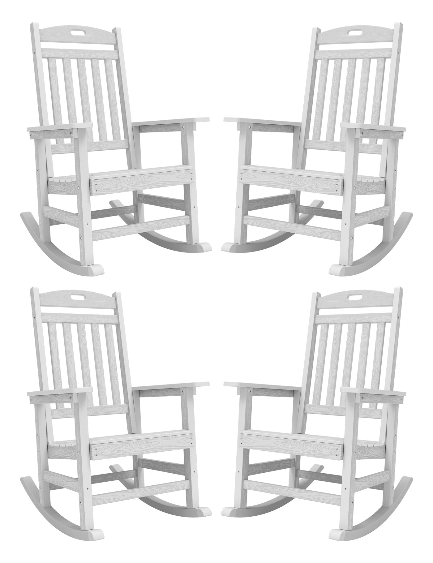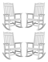 Yefu Outdoor Rocking Chair, Poly Lumber Rocking Chairs For Porch Set Of 4 With High Back, Poly Rocking Chair Look Like Real Wood, Widely Used For Patio, Lawn, Indoor, 380Lb Heavy Duty(White)