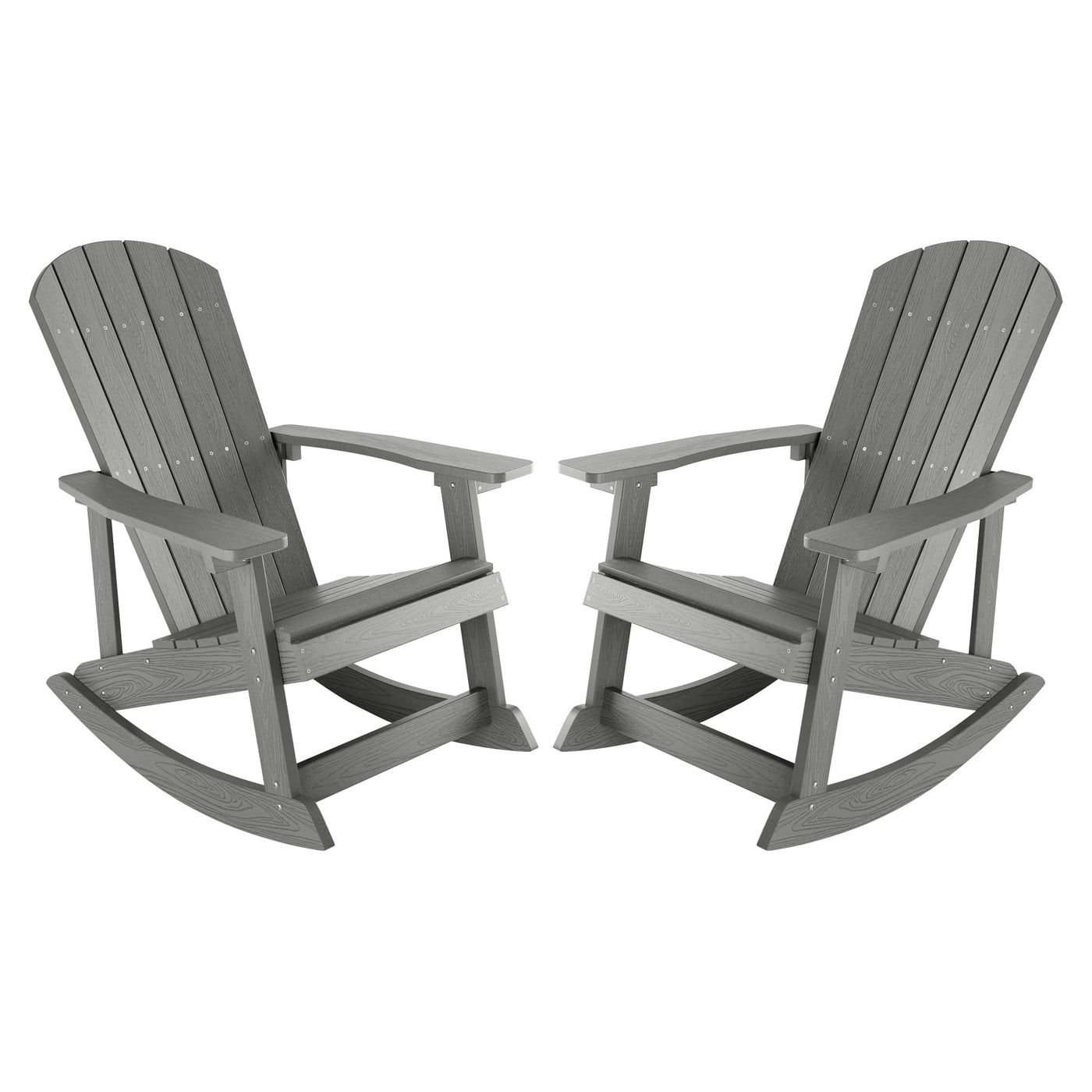 Yefu Outdoor Rocking Chair Set Of 2,Adirondack Rocking Chair,Patio Rocker Chair With Wide Back,Oversized Rocker Chair Look Like Real Wood, For Lawn, Porch, Backyard, Indoor And Garden(Grey)