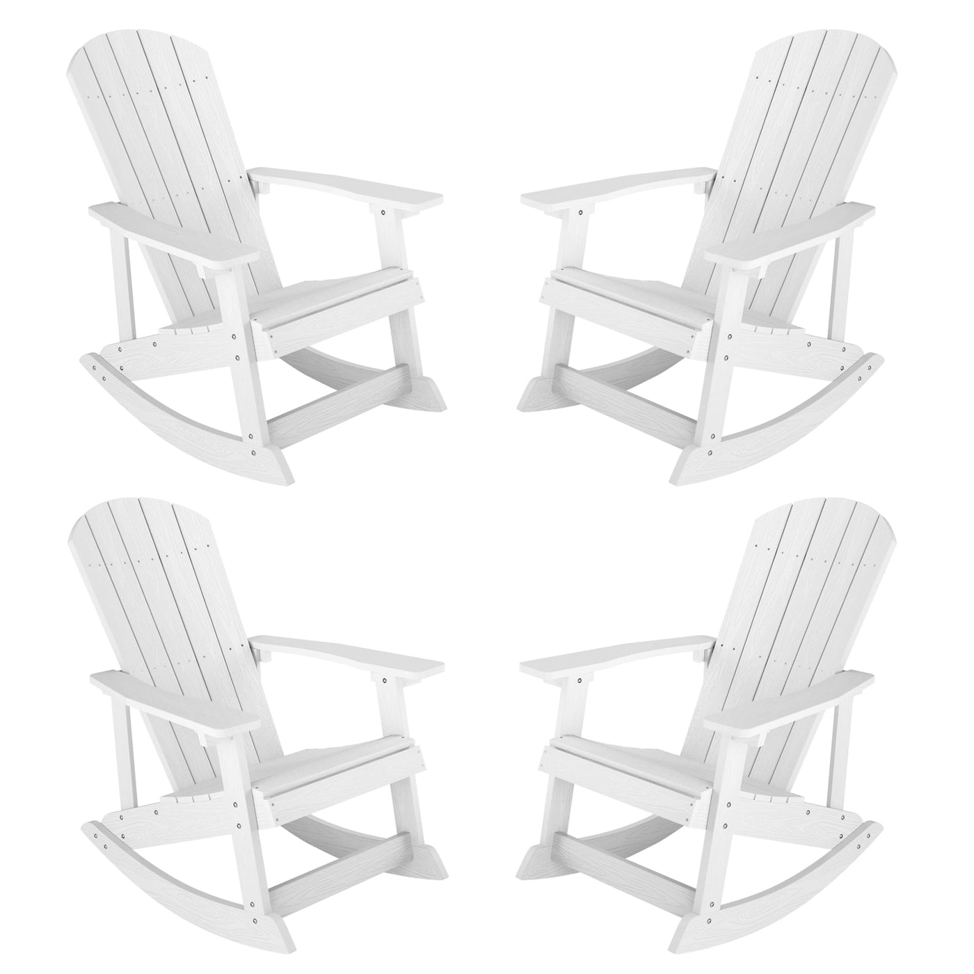 Yefu Outdoor Rocking Chair Set Of 4,Adirondack Rocking Chair,Patio Rocker Chair With Wide Back,Oversized Rocker Chair Look Like Real Wood, For Lawn, Porch, Backyard, Indoor And Garden(White)