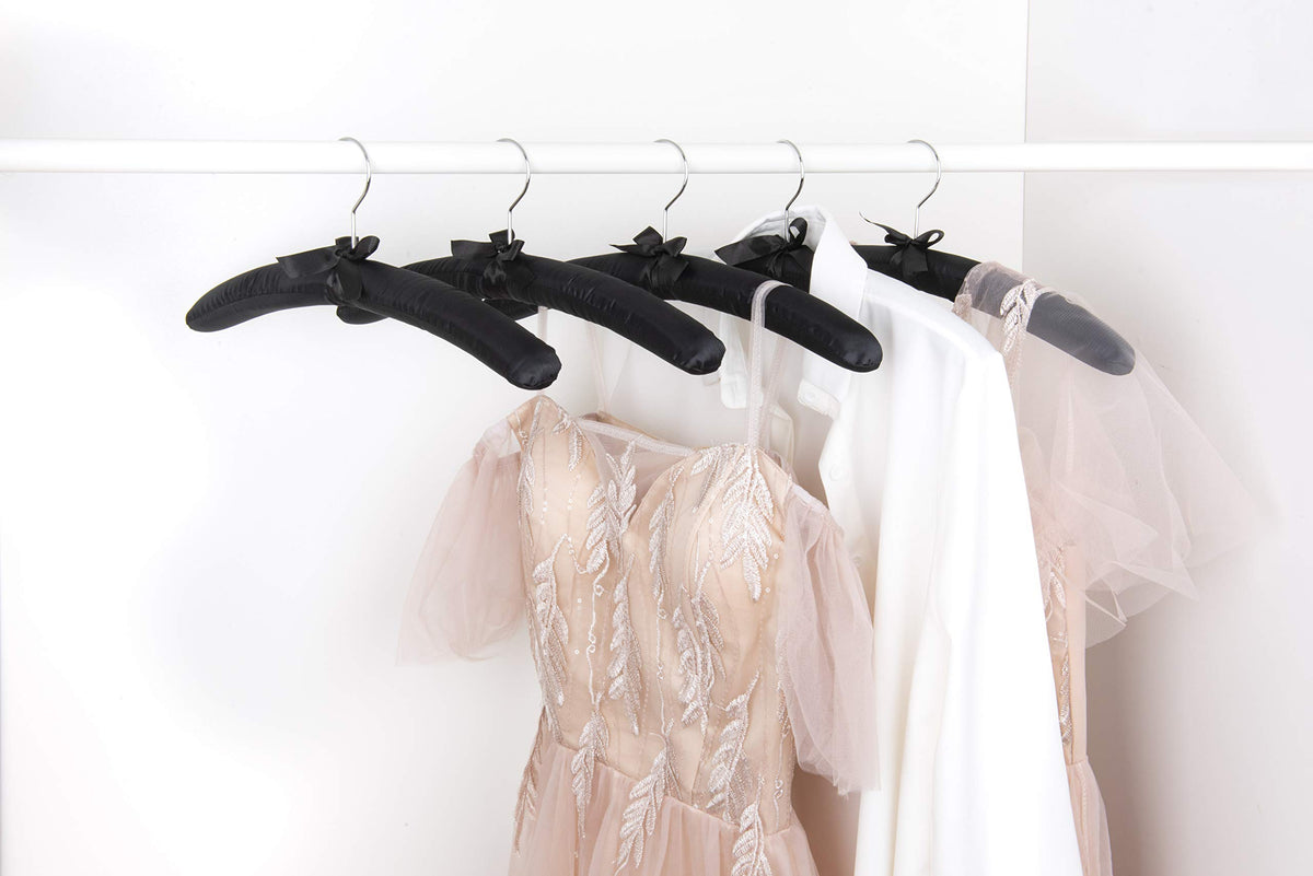 Q: How should I care for my satin padded hangers?A: To maintain the quality of your satin padded hangers, avoid exposing them to excessive moisture and clean them gently with a soft, dry cloth. This will help preserve the elegant satin finish and ensure the longevity of the hangers.