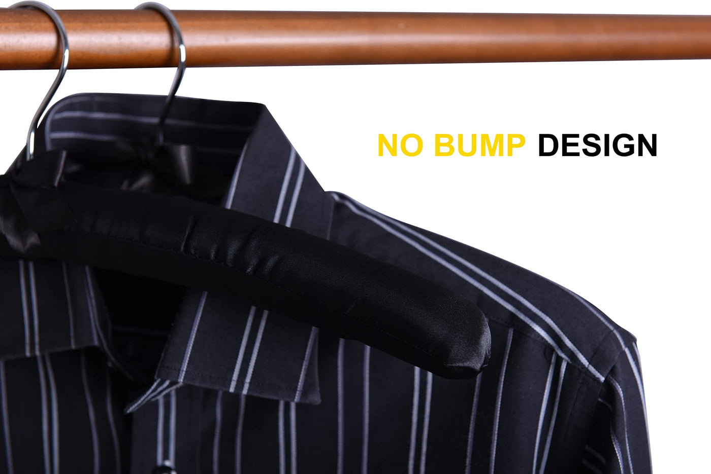 Amber Home 17 Inch Large Black Satin Padded Hangers For Women Clothing 5 Pack, Anti Slip Cushioned Hangers For Sweaters, Silk Hangers Fancy Dress Hangers For Wedding, Delicate Cashmere (Black, 5 Pack)