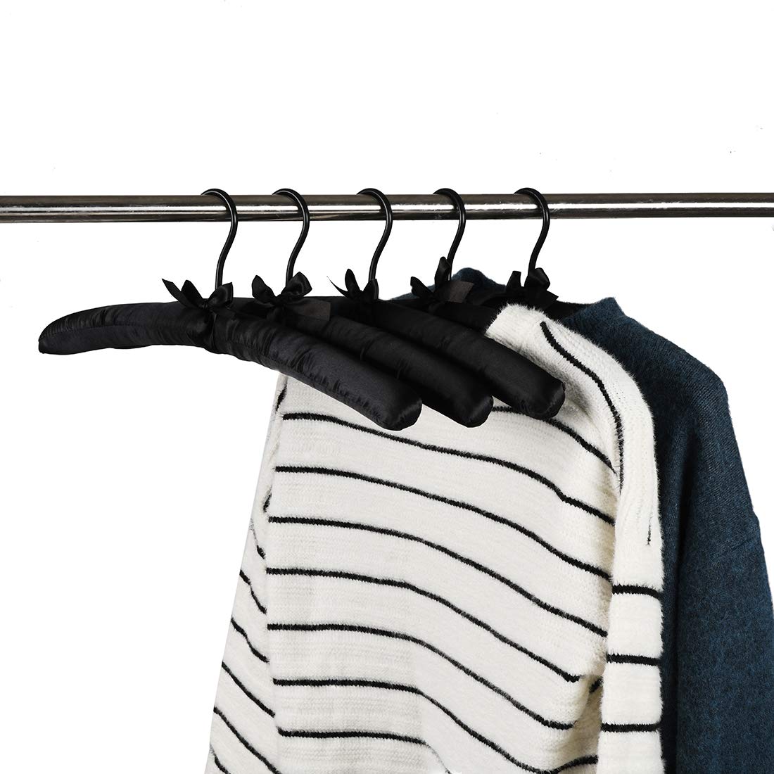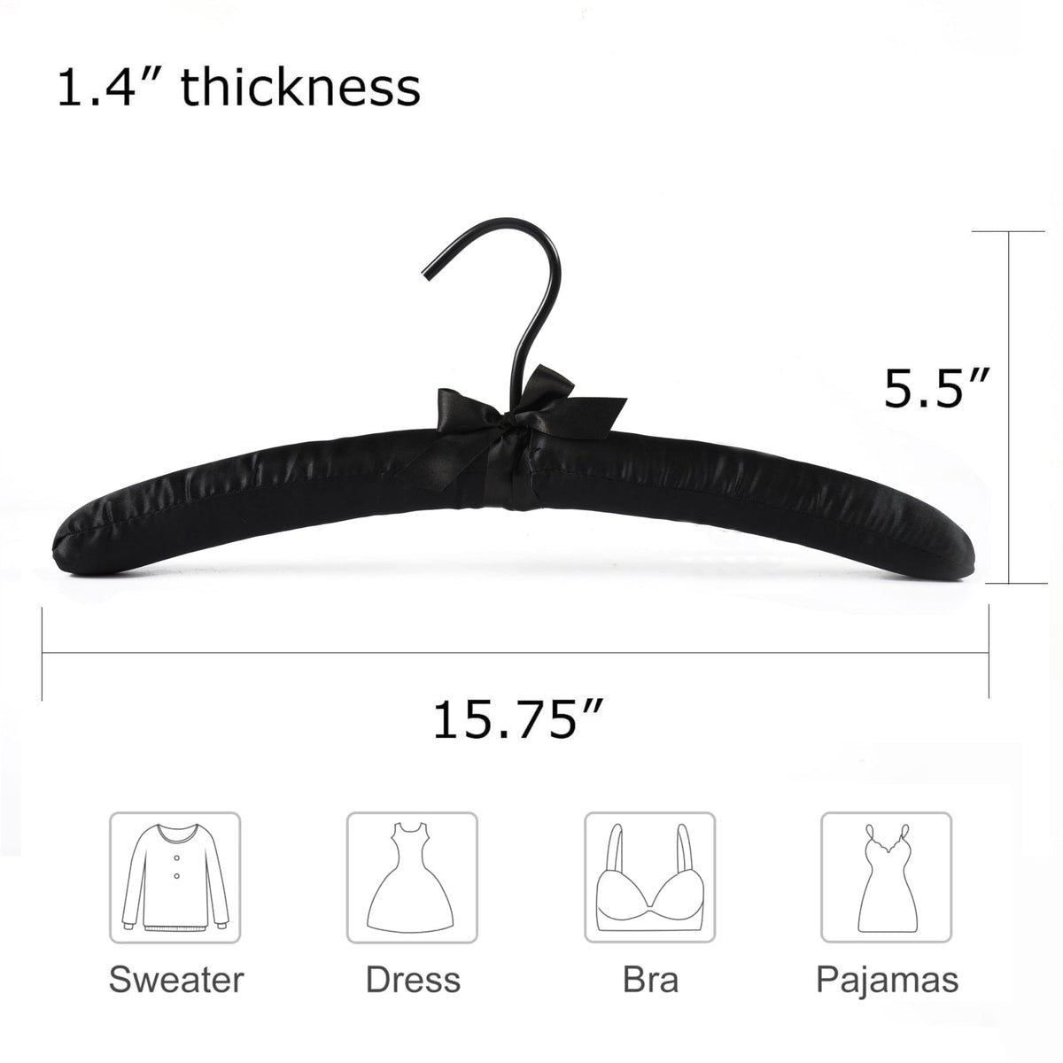 Better To U Black Satin Padded Sweater Hangers 5 Pack, Blouse Hanger With Thick & Soft Foam For Bridal Wedding Dress Lingerie, S