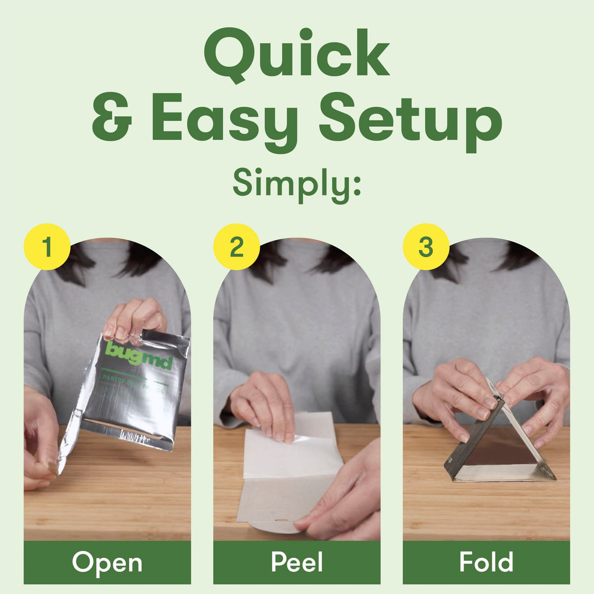 Q: Are the traps easy to set up and monitor?A: Yes, the BugMD Pantry Moth Traps are designed for hassle-free setup. Simply peel off the protective film, fold, and place them where needed. Monitoring is easy, and disposal is mess-free.