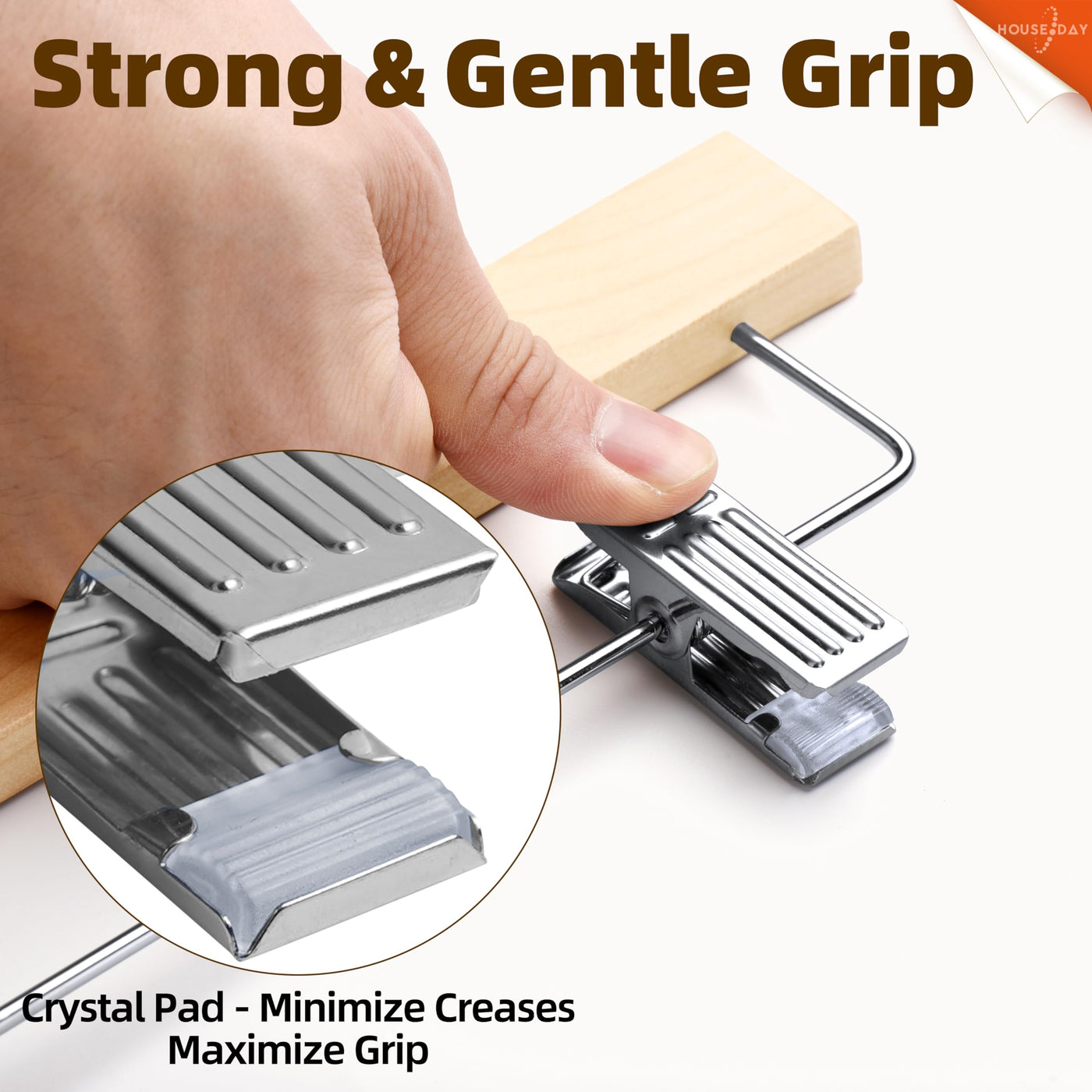 House Day 14'' Natural Wooden Pants Hangers With Clips These Flat Wooden Pant/Skirt Hangers Can Be Used For Both Pants And Skirts. You Don'T Have To Worry About The Clips Staining Your Clothing As Ours Are Non-Staining, Clear Rubber Cushions Set Inside Two Adjustable Chrome Clips. The Swivel Hook And The Bar Are Also Chrome. The Wood Is Coated With Lacquer For Protection And Durability.