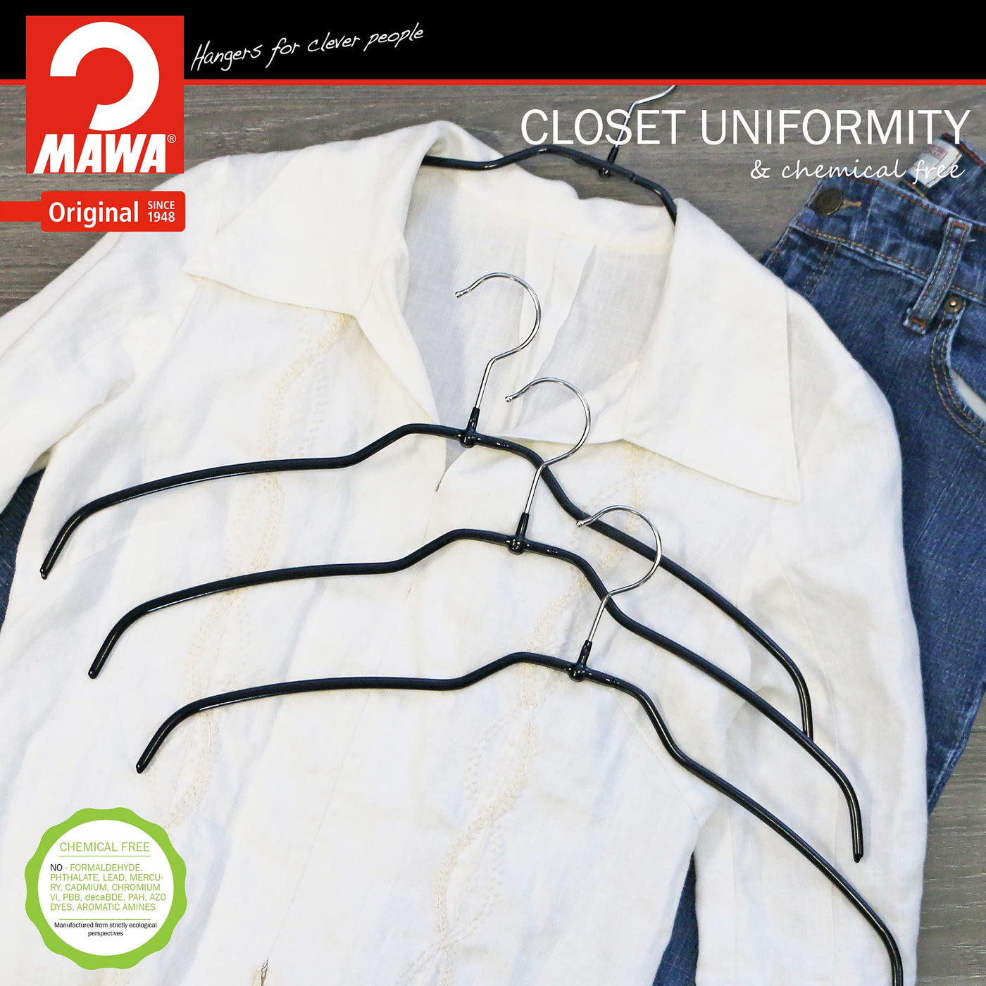 In 1948 Martin Wagner Had The Vision To Manufacture The Best Clothes Hanger In The World. That Dream Became A Fully Automated Manufacturing Process That Combines Specialized Machinery, Professional Designers/Engineers, And Experienced Sales Staff. Mawa Pioneered The Market With Patented Technology Such As Turntable Hooks, Anti-Slip Coating, And Clip Hangers. Mawa Delivers 100% ''Made In Germany'' Clothes Hangers To 58 Countries To Ensure High Quality Materials And Designs Are Offered Throughout The World. Managing Director, Michaela Schenk Has Made Consumer Safety Her Top Priority. All Materials Used For Production Can Be Recycled And Water Consumption In The Manufacturing Process Has Been Reduced By 80%. Mawa Is And Certified In Accordance With Germany'S Strict Ecologic Standards. The Culmination Of European Standards And Maw'S Dedication To High Standards, Results In A Product Which Is Not Hazardous To The Customer Or Planet. Our Silhouette Non-Slip Ultra Thin Hanger Is Absolutely Perfect For Your Most Delicate Shirts And Dresses. This Non-Slip Shirt Hangers Are Carefully Designed To Avoid Those Inevitable Shoulder-Bumps You Get From Using Straight Hangers. It Preserves The Appearance And Fit Of Your Most Delicate Blouses, Shirts And Dresses. Their Anti-Slip Coating Keeps Your Clothes On The Hanger No Matter The Fabric Type And Off The Floor. The Hanger'S Slim And Sleek Design Allows You To Maximize Space Your Closet Space By 40% While Keeping Your Clothes Secure While Being Stored. It Also Has A Turntable Hook To Hang It In Different Directions. All Mawa Products Hang Uniformly To Create An Even Neat Look. All Mawa Products Hang Uniformly To Create An Even Neat Look. Your Clothes Do Not Need To Suffer, And Neither Does Your Wallet. Take Care Of Your Clothes By Using The Mawa Line Of Hangers. Save Space, Get Organized And Treat Your Garments & Yourself With The Utmost Care.