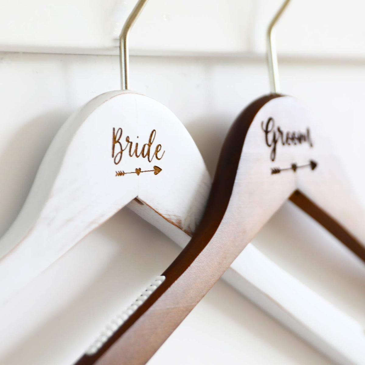 Your Wedding Dress Is An Important Part Of Your Special Day! Why Not Hang It On A Beautiful Hanger? The Bride And Groom Hangers Are Wysiwyg! Succinct Engraved, Only ''Groom'' Or ''Bride'' Letter On It.