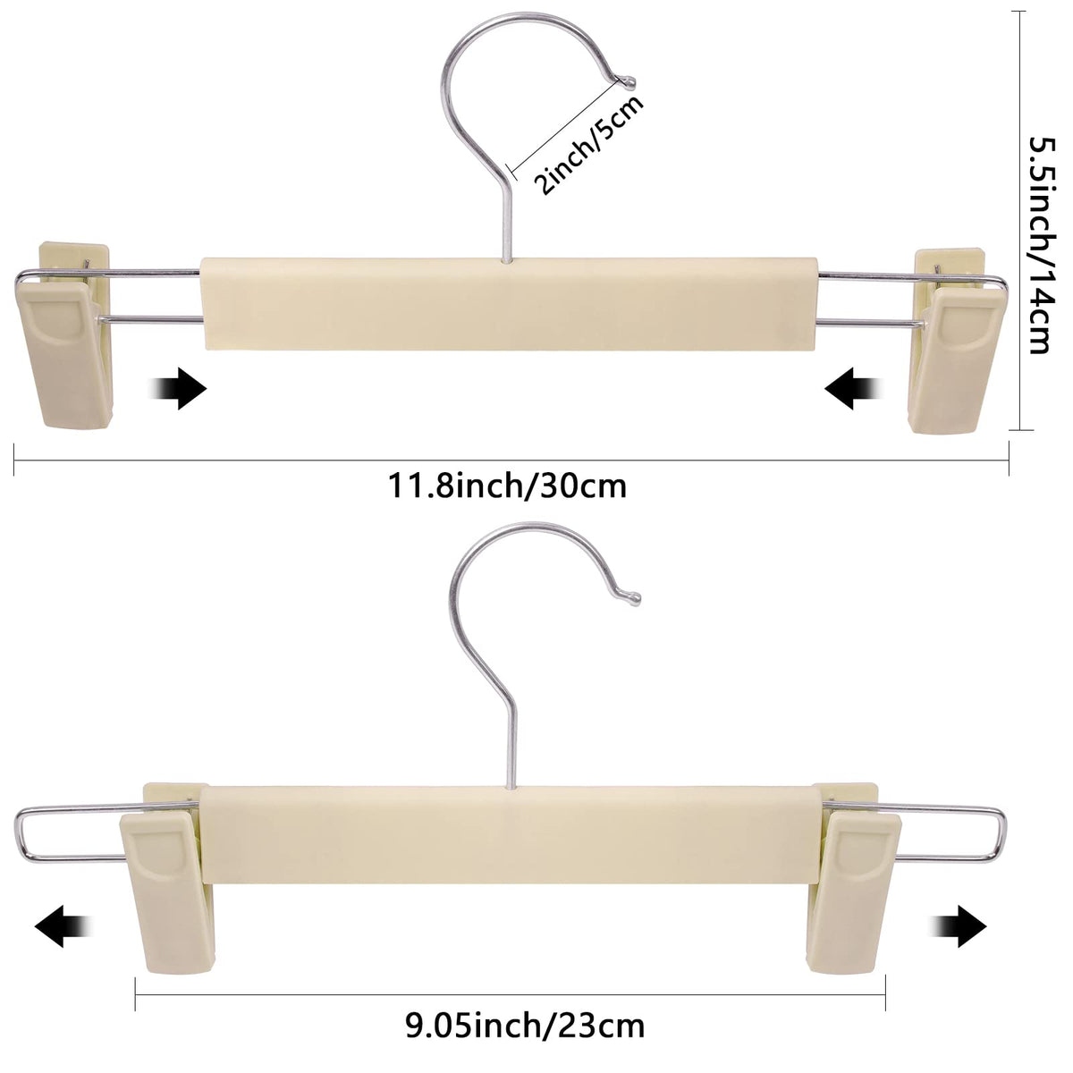 Package Included: 30Pack Or 50Pack Pants Hangers. Color Avialable: Pink, Blue, Green, Kahki, White And Black Clip Hangers For Pants. Pants Hangers Dimension:12 X1.2 X 5.3 In (L X W X H) Approx. Excellent Design: Abs Plastic, Strong Metal Swivel Hook And Adjustable Nonslip Clips