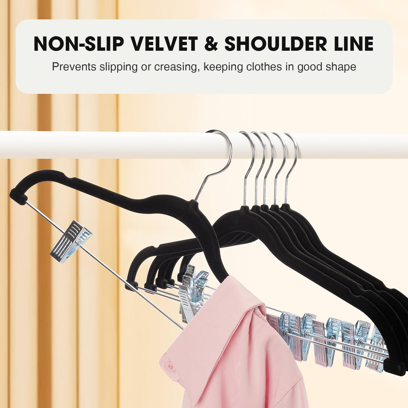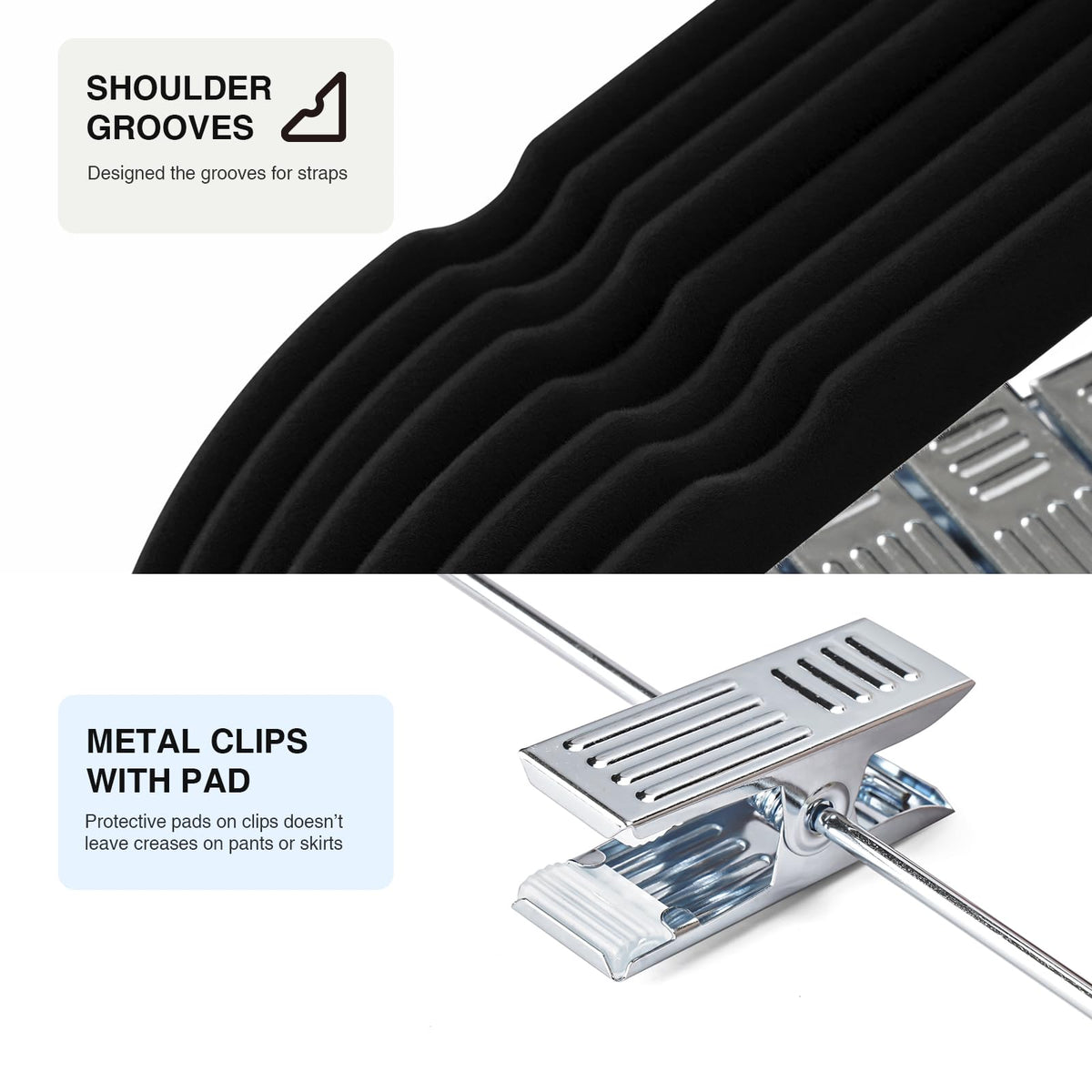 Ulimart 36-Pack Black Velvet Hangers,Pants Hangers With Clips Adjustable,Felt Hangers,Heavy-Duty,Non-Slip,Space Saving,Slim Clot