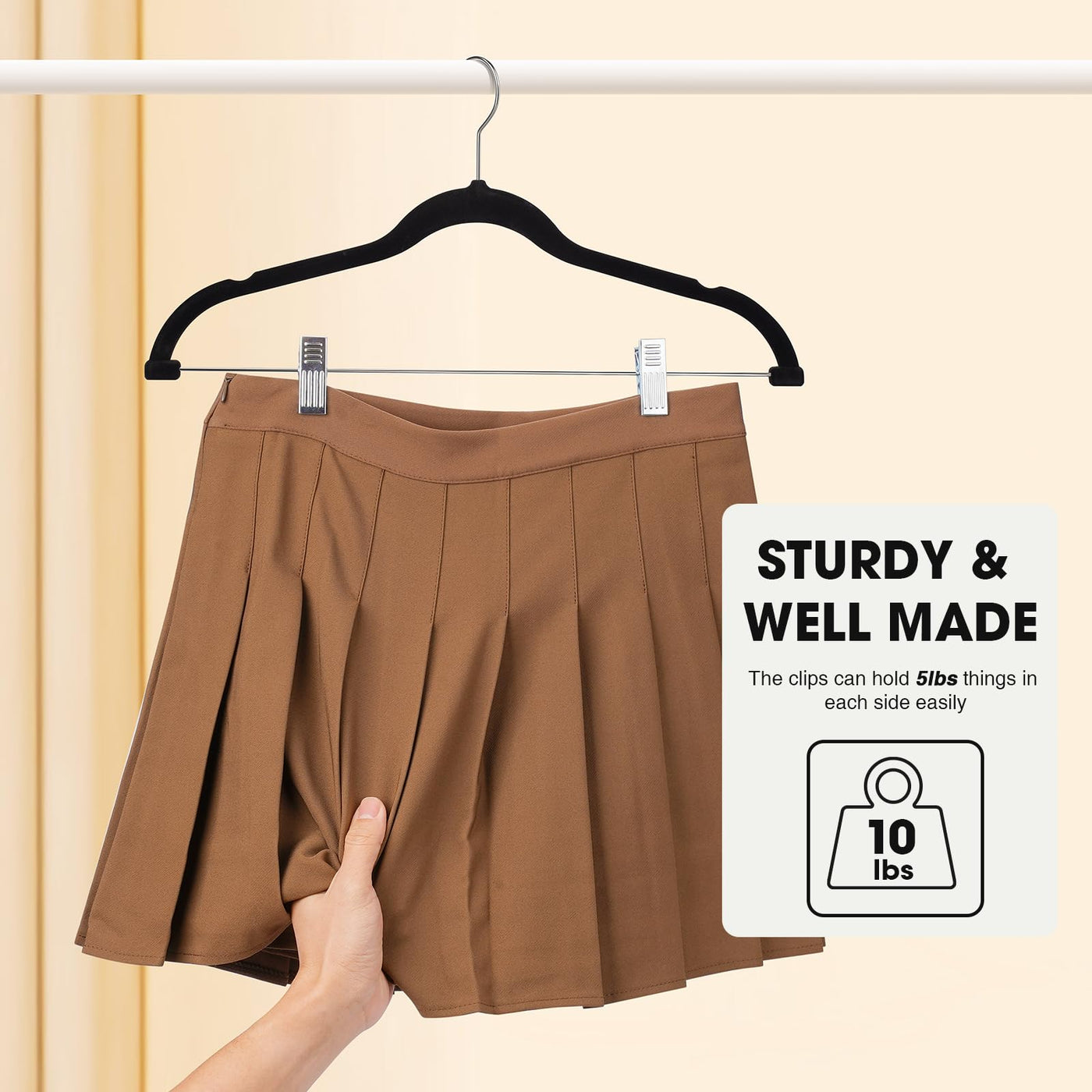 Q: Are the clips adjustable on these hangers?A: Yes, the clips are adjustable and can accommodate a maximum width of 13.4 inches, making them suitable for various sizes of pants and skirts.