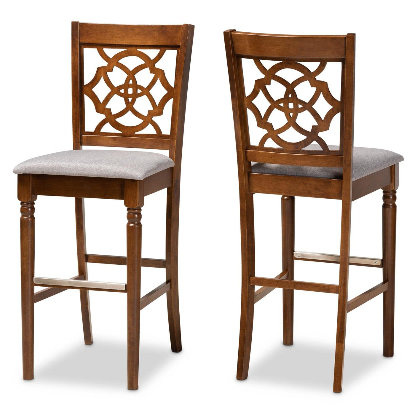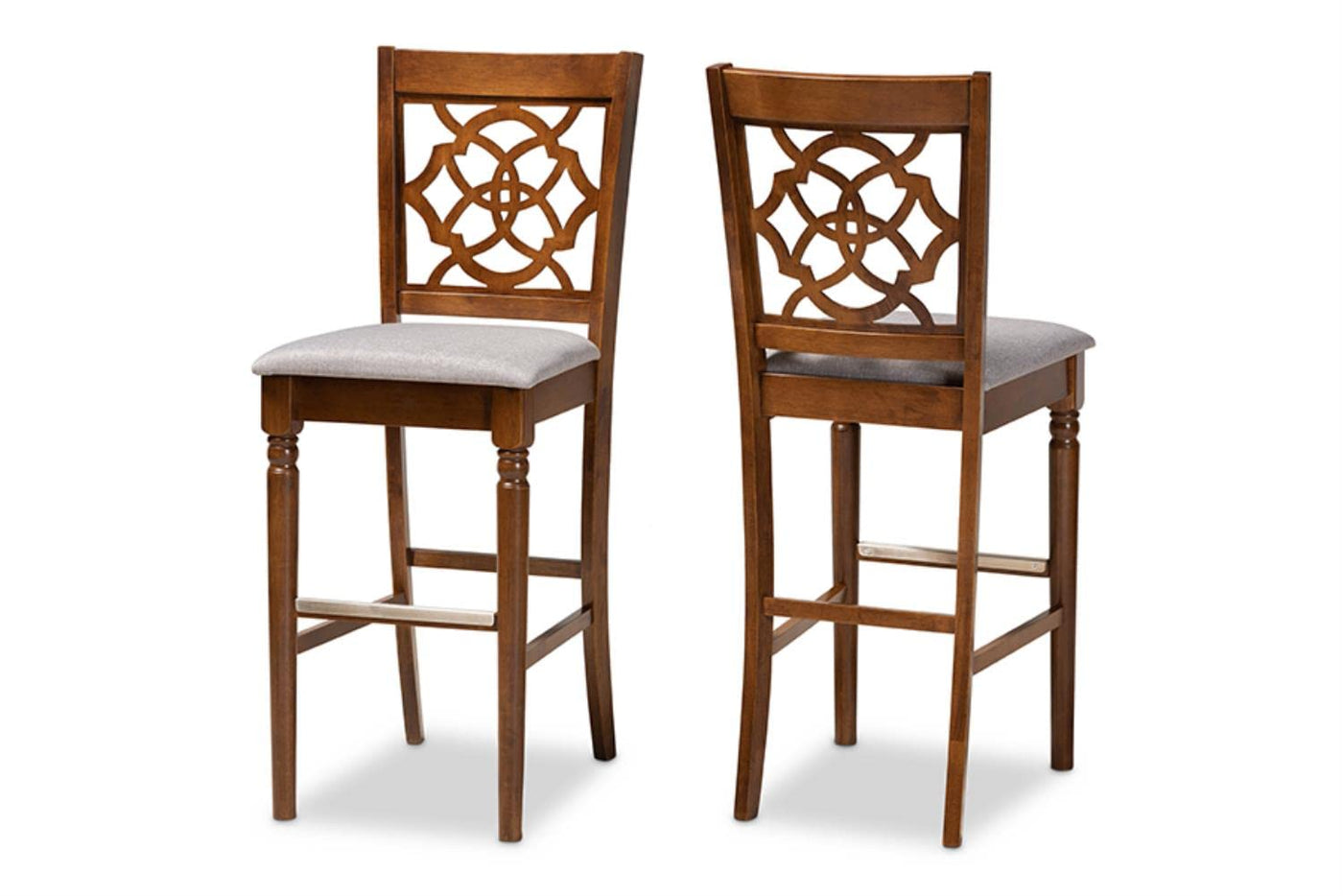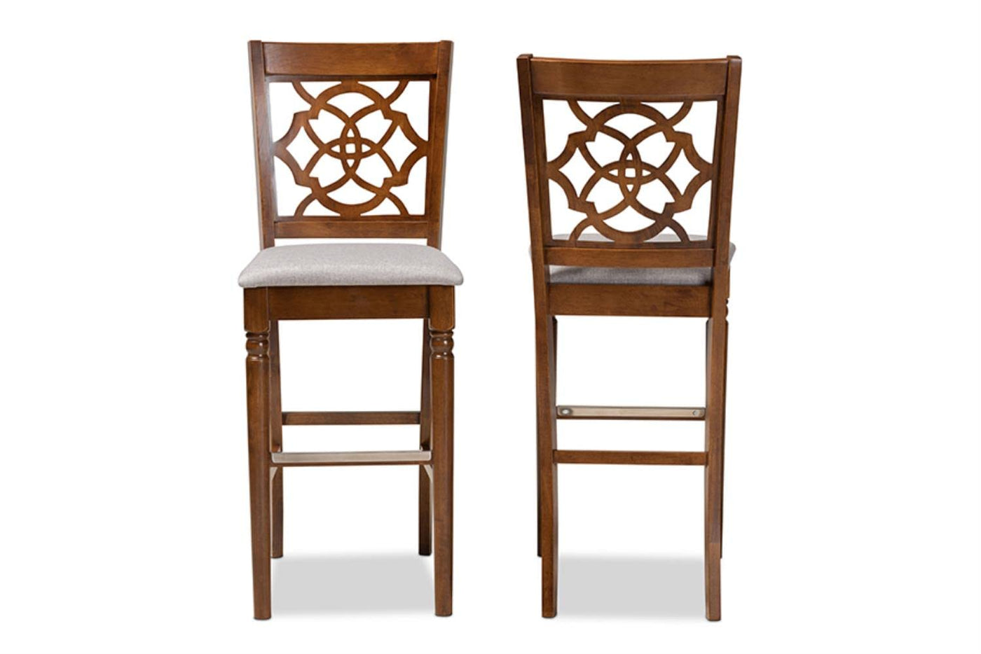 Baxton Studio Alexandra Gray Upholstered Walnut Wood 2-Piece Bar Stool Set