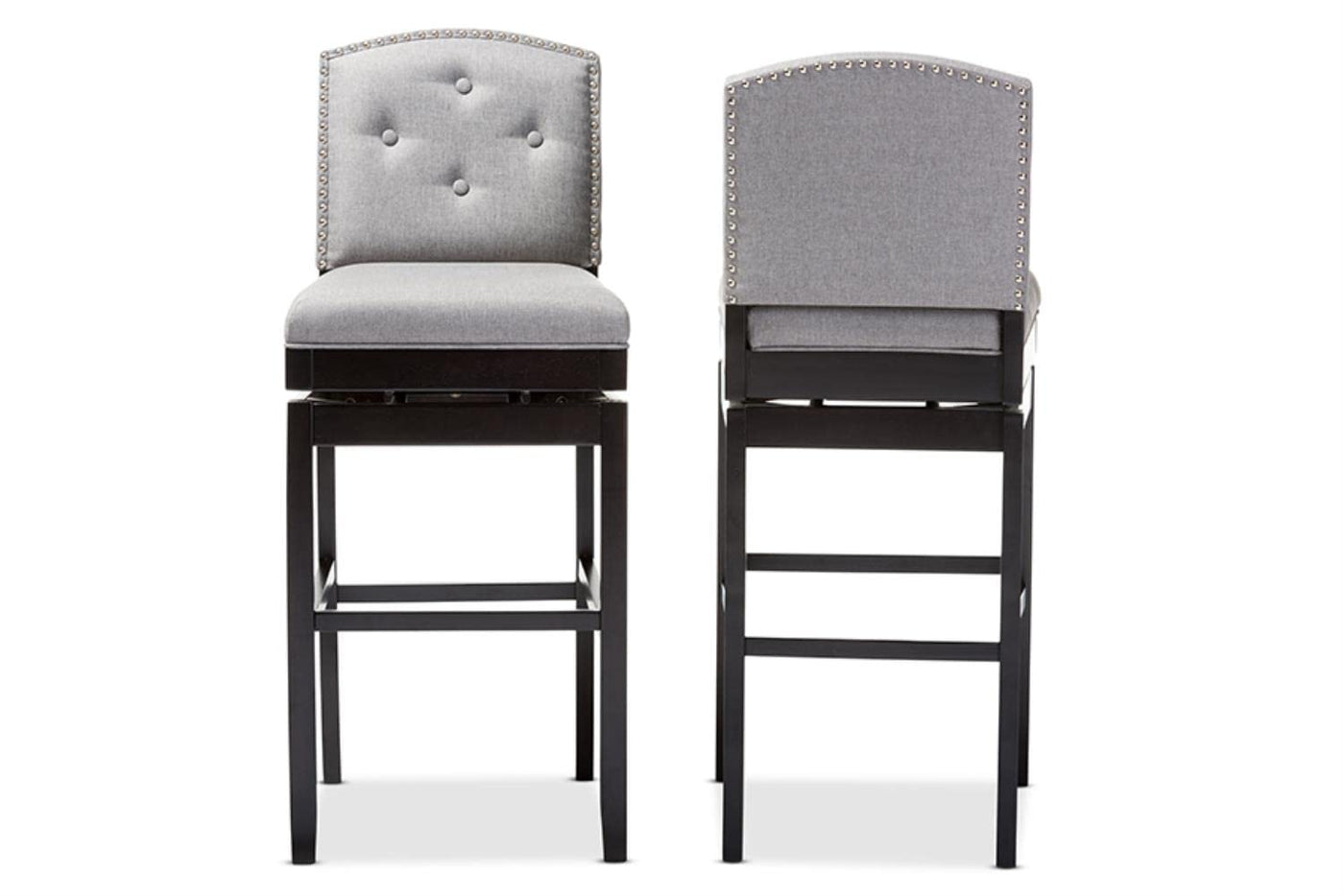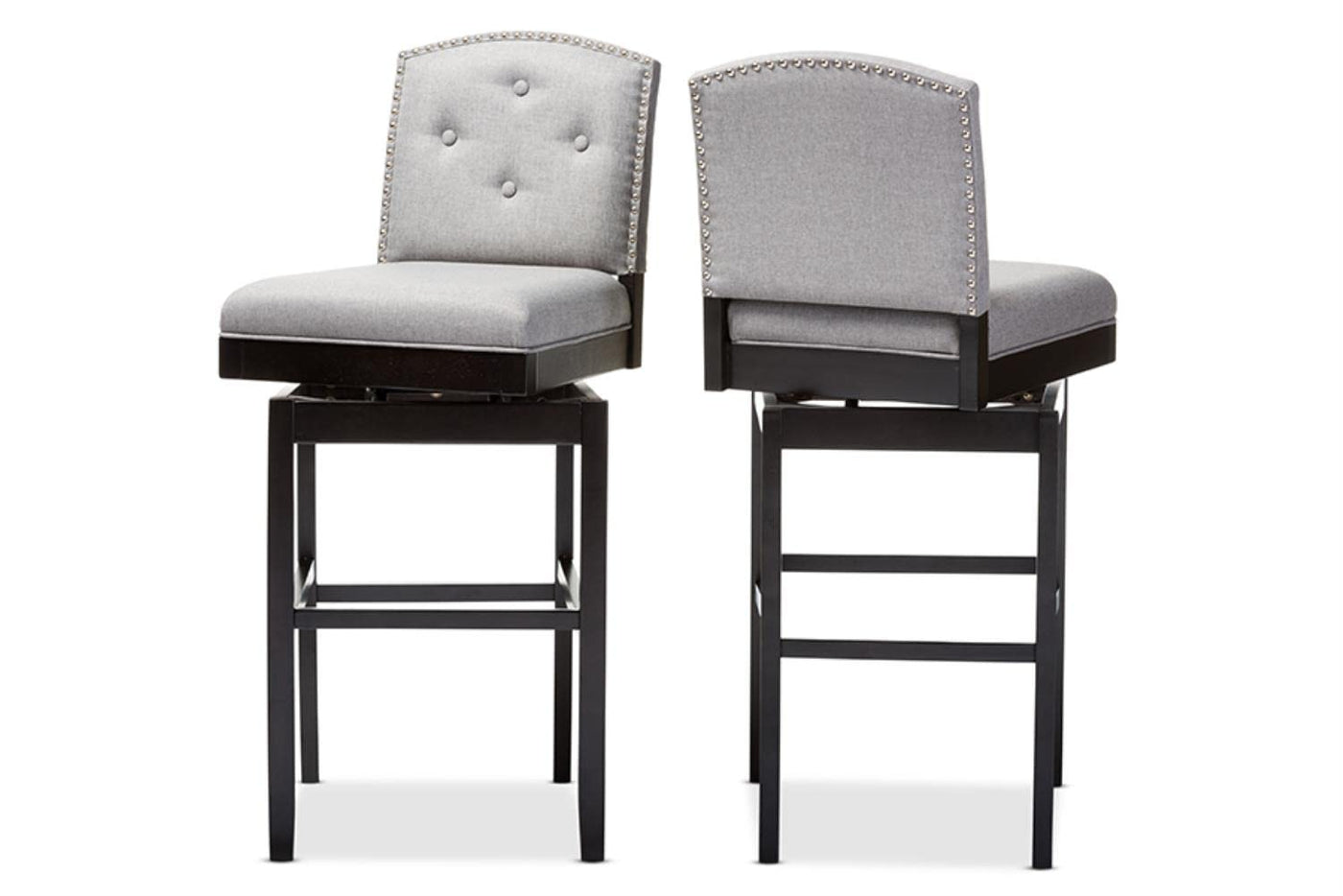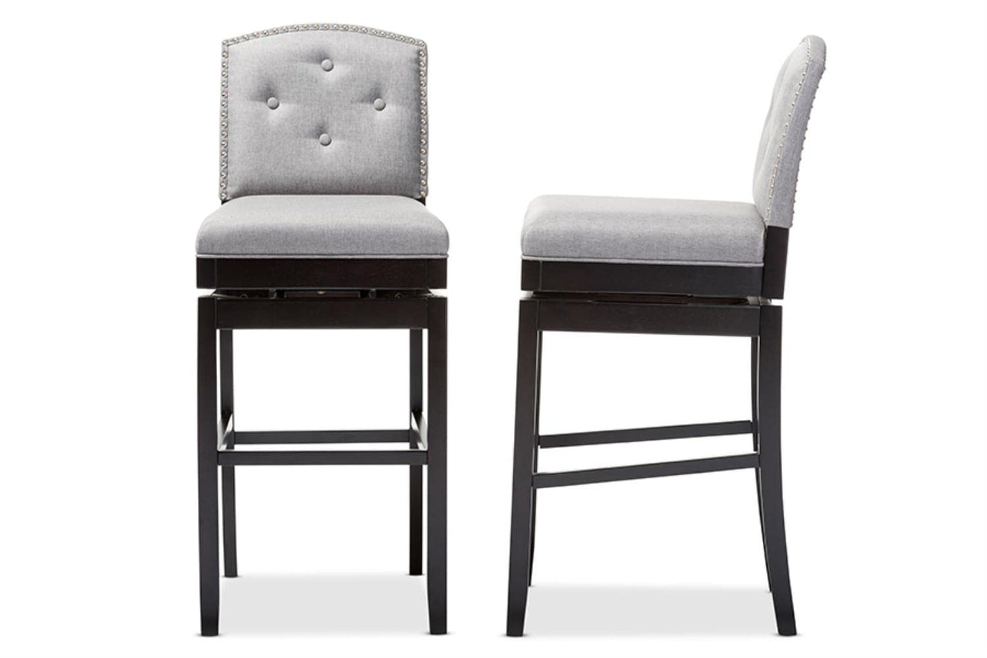 Baxton Studio BBT5220-Grey Ginaro Modern & Contemporary Fabric Button-Tufted Upholstered Swivel Bar Stool, Grey