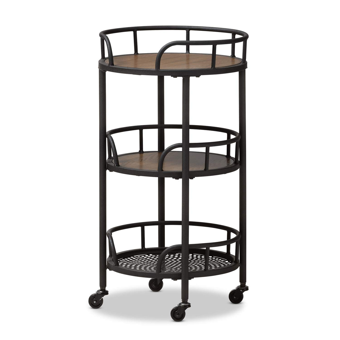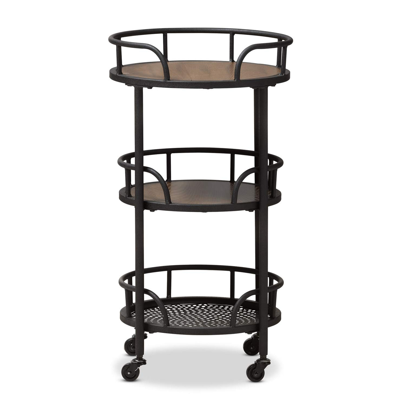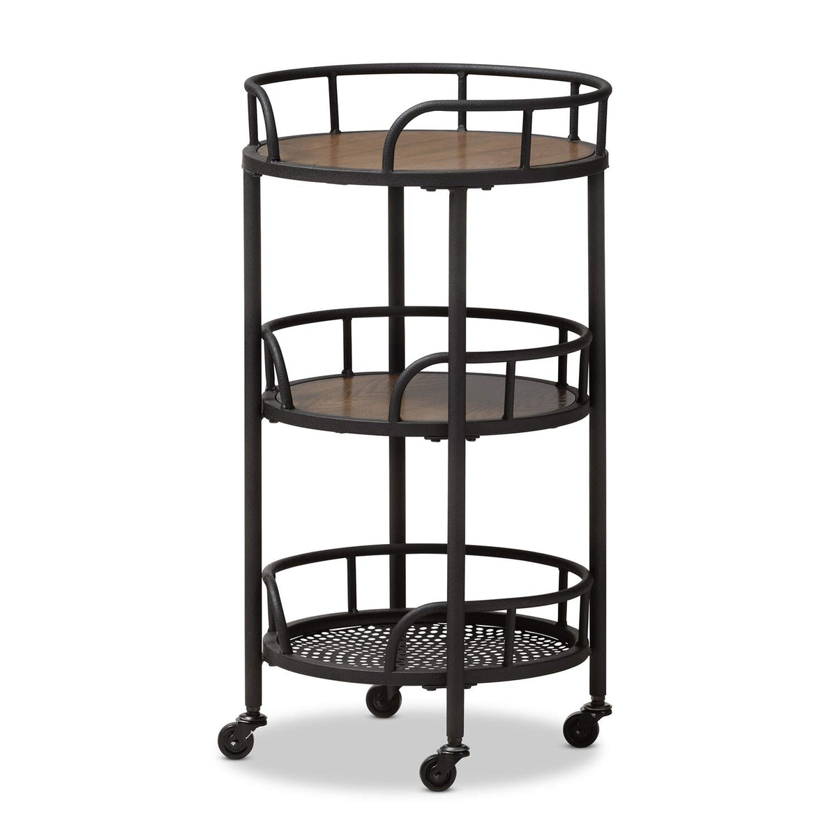 Baxton Studio Bristol Rustic Industrial Style Metal and Wood Mobile Serving Cart/Rustic Industrial/Black/Walnut Brown/Wood/Metal