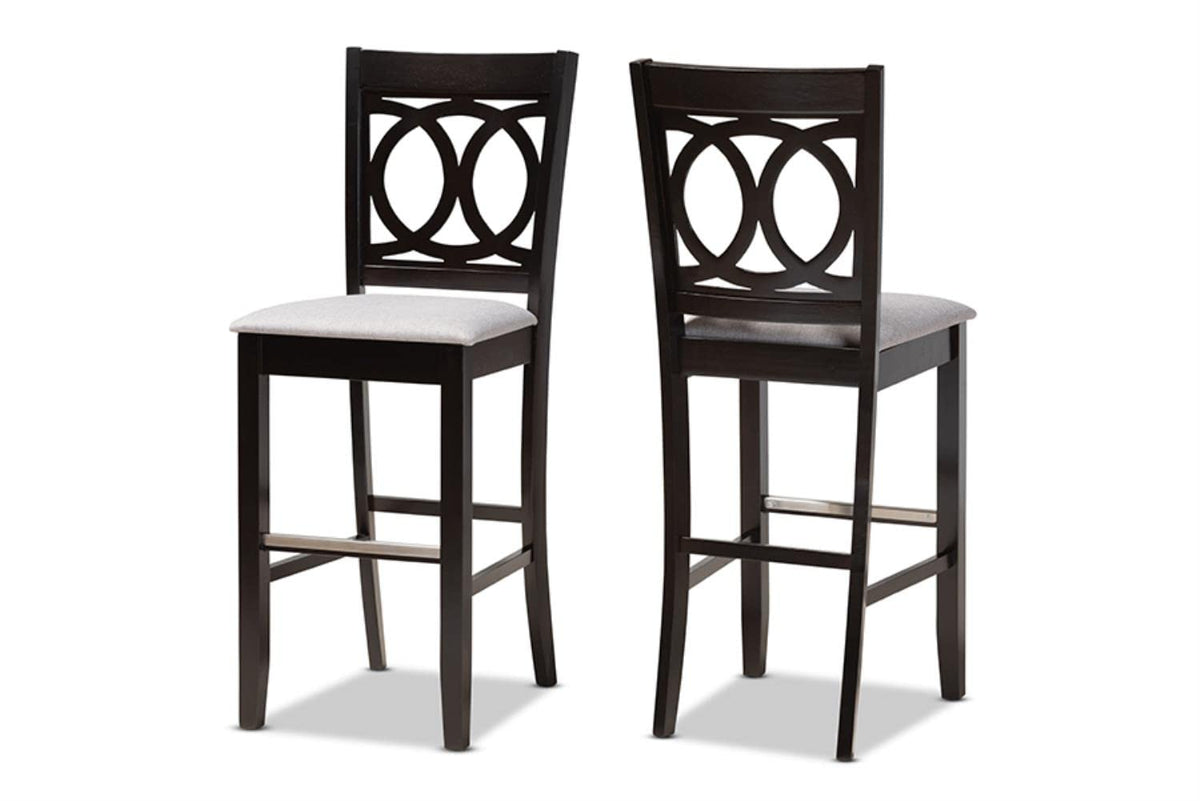 Baxton Studio Carson Gray Upholstered Espresso Wood 2-Piece Bar Stool Set