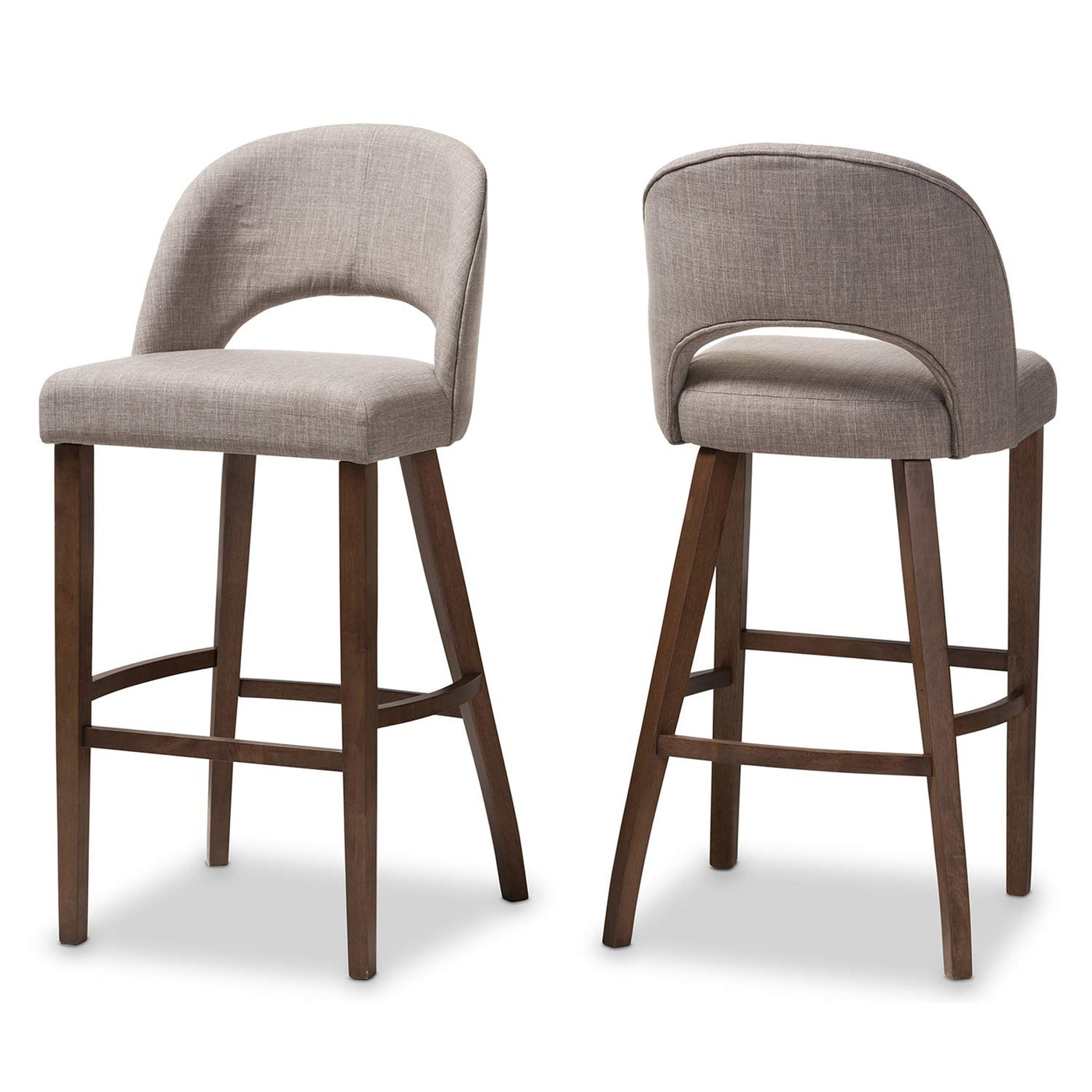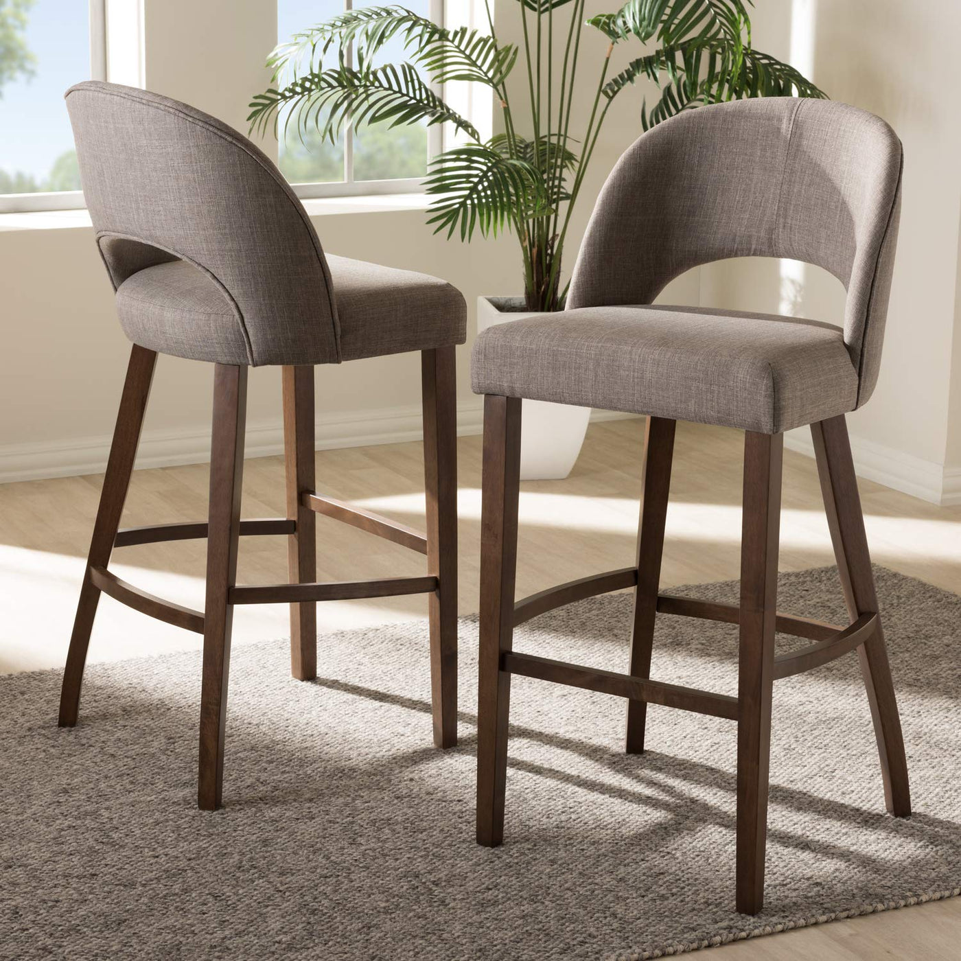 Baxton Studio Melrose Mid-Century Modern Light Grey Fabric Upholstered Walnut Finished Wood Bar Stool Set Grey/Qty 2/Medium Wood/Mid-Century/Fabric Polyester 100%"/Rubber Wood/Foam