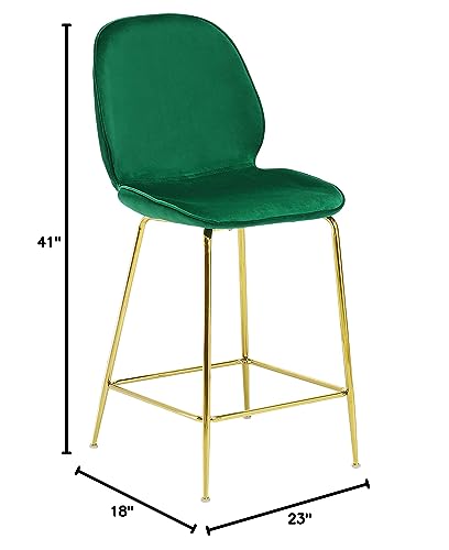 Best Master Furniture Tara Modern Design Counter Stool With Gold-Plated Metal Frame, Set Of 2, Emerald