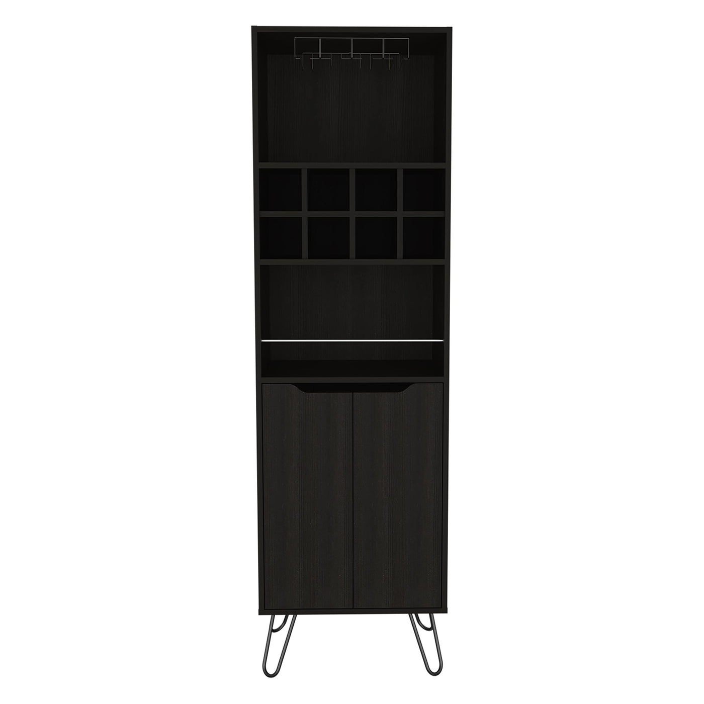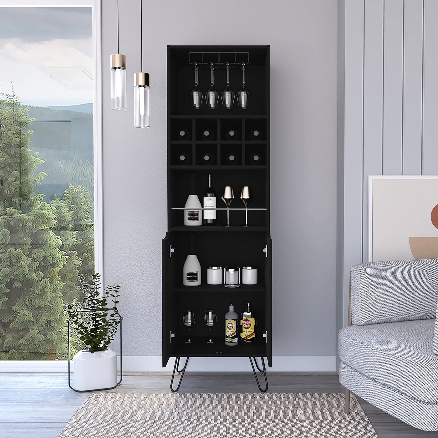 DEPOT E-SHOP Zamna H Bar Double Door Cabinet, 8 Built-in Wine Rack, 4 Legs, 4 Shelves, Black