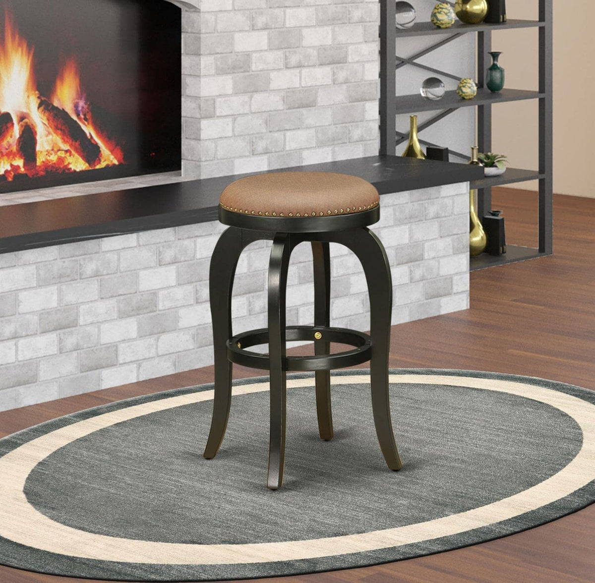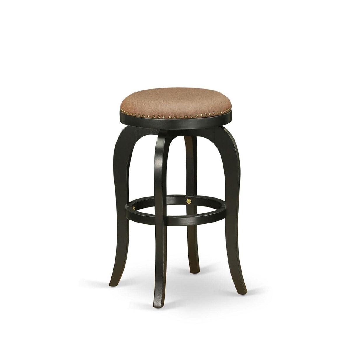 East West Furniture - Bfs030-112 - Bedford Backless Bar Stoolthis Real Wood Countertop Height Stool Is Sure To Make A Beautiful Statement In Your Home When Aiming For A Luxurious Arrangement. The Beautiful Kitchen Counter Height Barstool Comes In A Black Finish, With An Elegant 30-Inch Counter Height Stool Featuring A Natural Brown Roast Finish Upholstery Seat With High-Density Foam For Added Comfort. This Backless Bar Stool Not Only Looks Impeccable In The Kitchen Area But Is Also Perfect For Use In The Pool Or Game Room. The 360-Degree Swivel Seat Allows For Easy Movement, While The Robust Wooden Body Provides Stability. It Features A Footrest Protected With A Metal Kick Plate That Ensures The Durability And Sturdiness Of This Stool. The Floor Slides Protect Your Floors And Ensure Smooth Gliding. This Upholstered Stool Is Embellished With Decorative Nail Trimming On The Seat And Elegantly Bowed Legs. With Its Eye-Catching Styling And Added Comfort, This Stool Is Sure To Provide Comfort And Enhance The Aesthetics Of Your Home.Feature: Material: Wood Lags Color: Black Leg Fabric Material: Pu Leather Fabric Color: Brown Roast Stool Dimension: Length: 20.5; Width: 20.5; Height: 30.Include: A Beautiful Bar Stool"