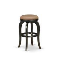 East West Furniture Bfs030-112 Bedford Counter Height Barstool - Round Shape Brown Roast Pu Leather Upholstered Pub Height Backless Chairs, 30 Inch Height, Black
