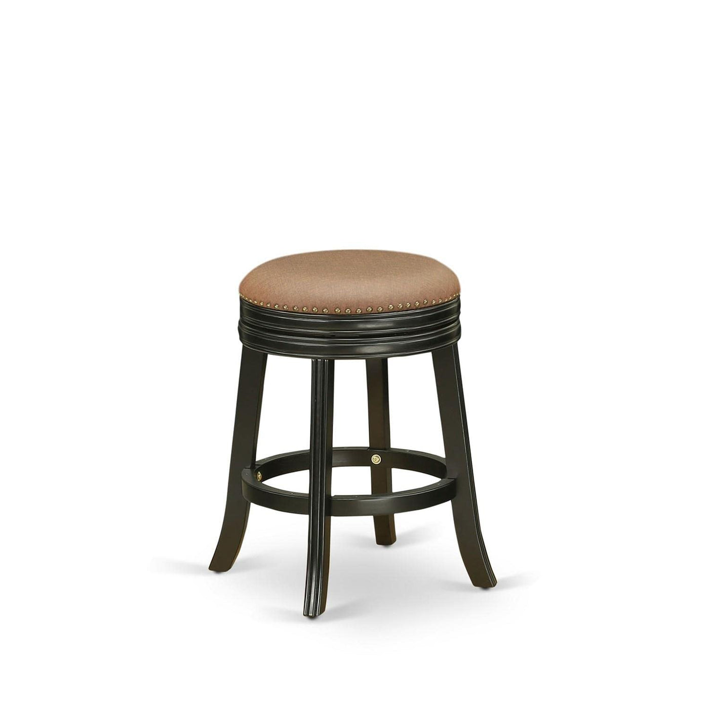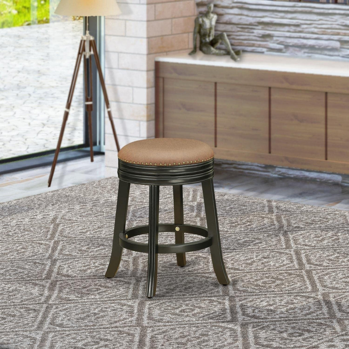 East West Furniture - Dvs024-112 - Devers Swivel Barstoolthis Elegant Wood Barstool With A Countertop Height Is Sure To Create A Stunning Impression In Your Home, Adding A Touch Of Class To Your Arrangement. The Stool Features A Beautiful Black Finish And A 24-Inch Height, Perfect For Kitchen Counters. Additionally, It Boasts A Natural Brown Roast Finish Upholstery Seat With High-Density Foam For Comfort. Not Only Does This Backless Bar Stool Look Great In The Kitchen, But It Also Complements Pool Or Game Rooms Perfectly. The 360-Degree Swivel Seat Allows For Easy Movement, While The Durable Real Wood Frame Provides Stability. The Stool Is Equipped With A Steel Kick Plate That Serves As A Footrest, Ensuring Durability And Toughness. Furthermore, The Floor Glides Protect Your Floor Surfaces And Ensure Smooth Gliding. This Barstool Is Adorned With Decorative Nail Trimming On The Seat And Elegantly Bowed Out Legs, Enhancing Its Overall Aesthetic Appeal. With Its Attractive Design, This Bar Stool Offers Both Style And Comfort.Feature: Material: Wood Legs Color: Black Fabric Material: Pu Leather Fabric Color: Brown Roast Dimension # Barstool: Length: 23; Width: 23; Height: 24.Include: A Wonderful Swivel Barstool.