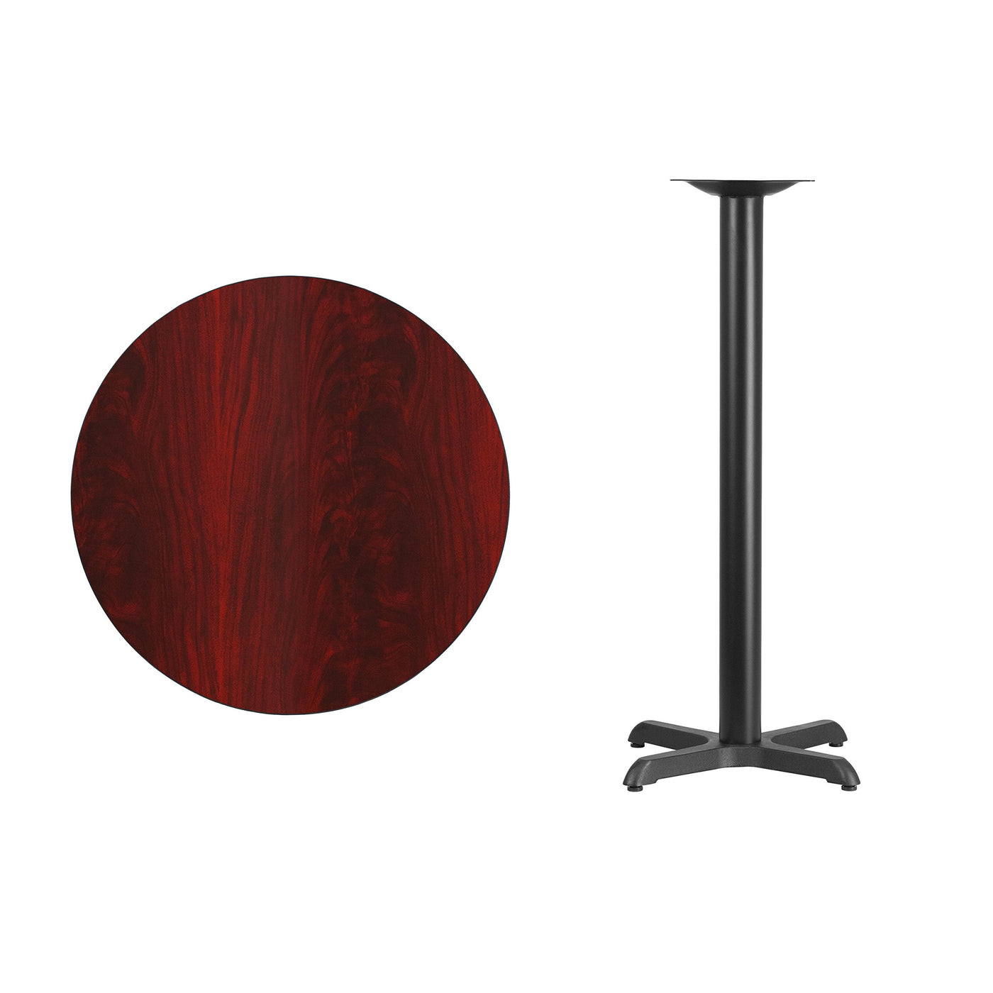 Flash Furniture 30'' Round Mahogany Laminate Table Top With 22'' X 22'' Bar Height Table Base