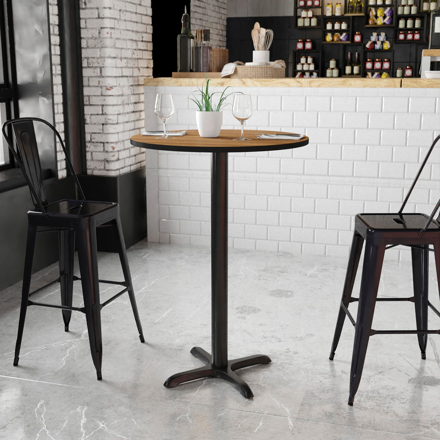 Flash Furniture 30'' Round Walnut Laminate Table Top With 22'' X 22'' Bar Height Table Base