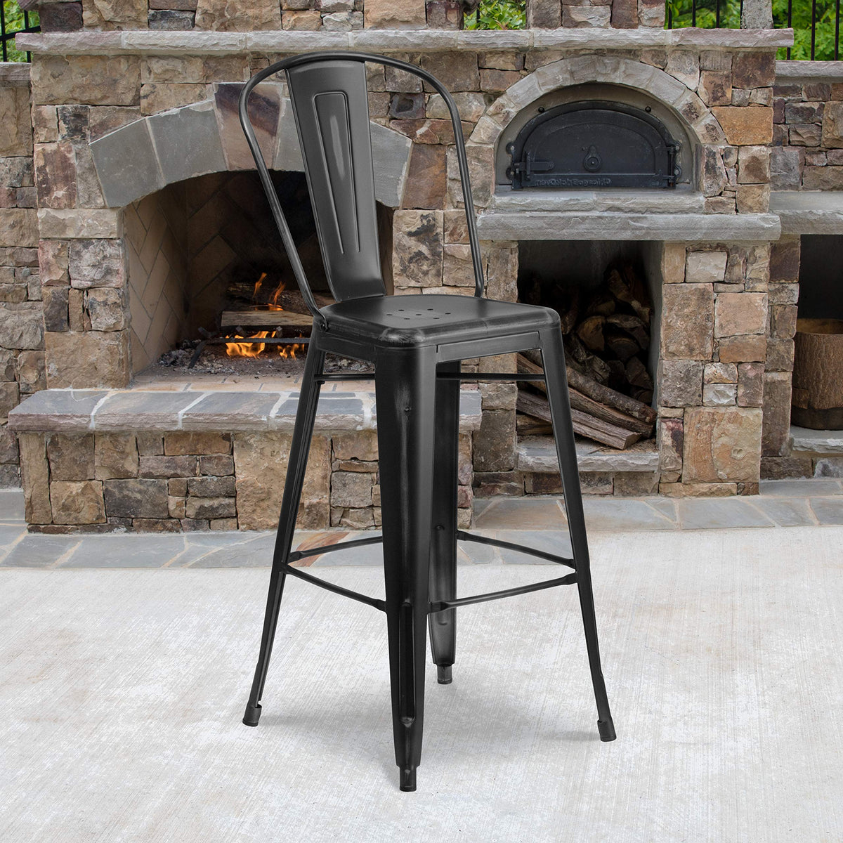 Flash Furniture Commercial Grade 30" High Distressed Black Metal Indoor-Outdoor Barstool With Back