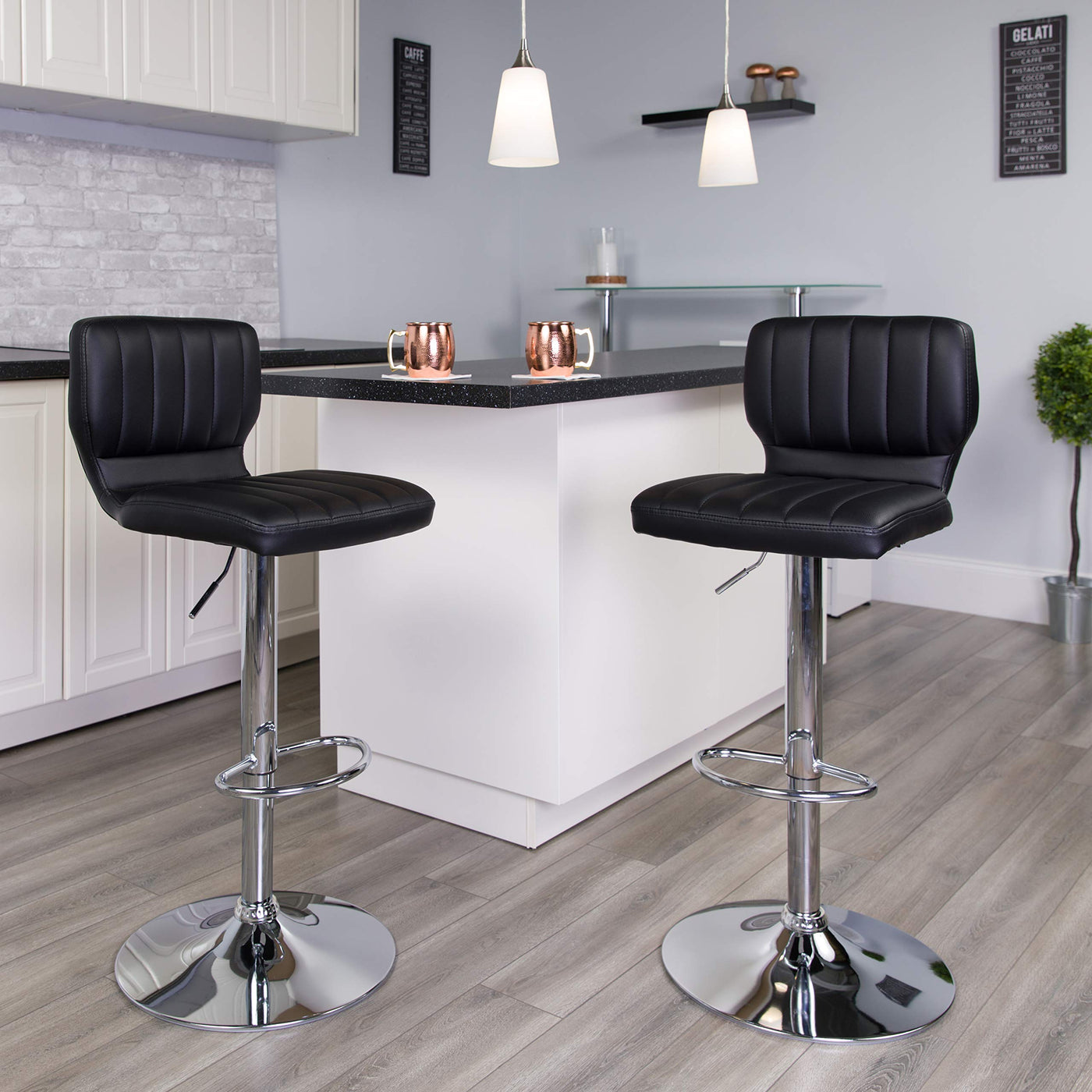 Flash Furniture Contemporary Black Vinyl Adjustable Height Barstool With Vertical Stitch Back And Chrome Base (Pack Of 1)