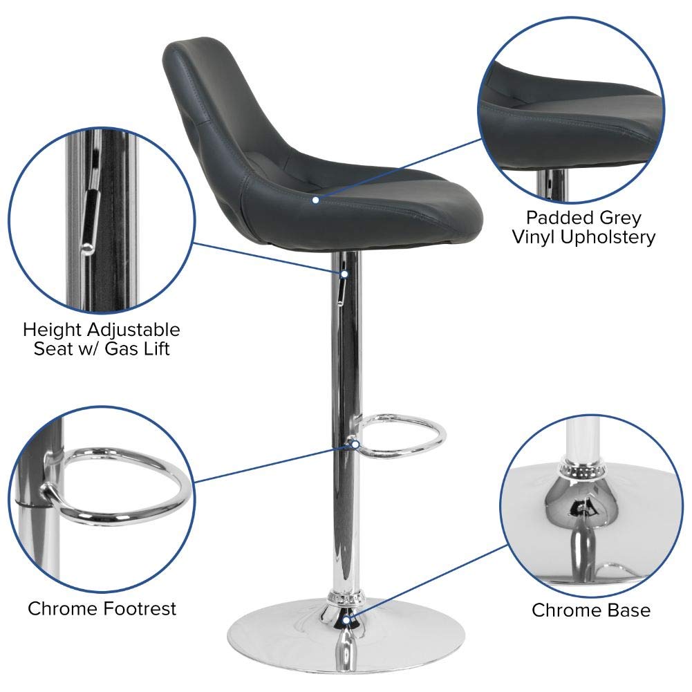 Flash Furniture Contemporary Gray Vinyl Adjustable Height Barstool With Chrome Base