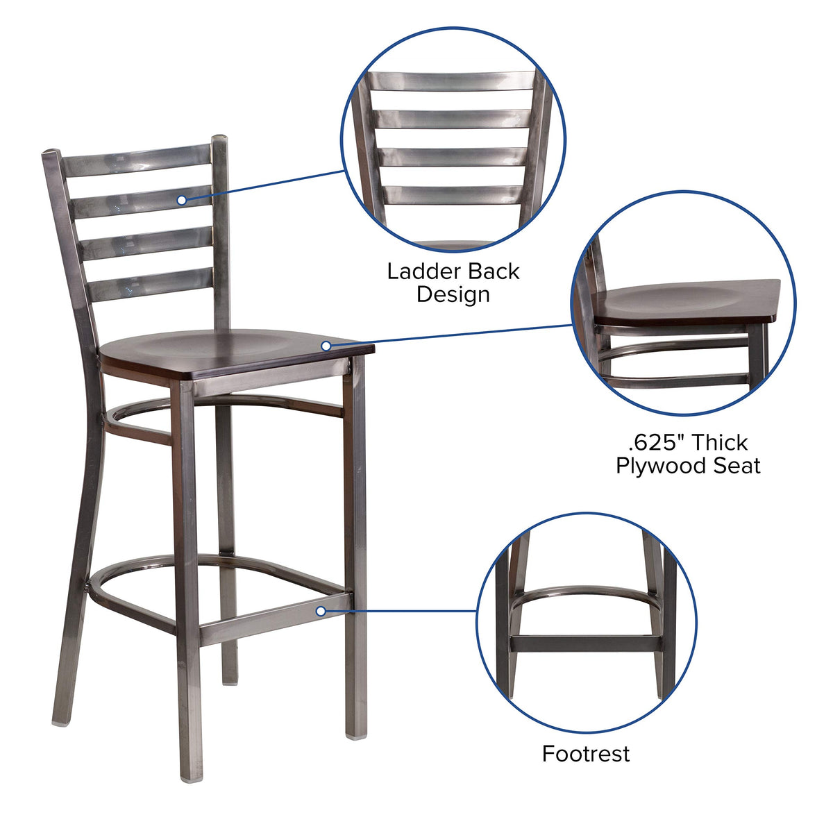 Flash Furniture Hercules Series Clear Coated Ladder Back Metal Restaurant Barstool - Walnut Wood Seat