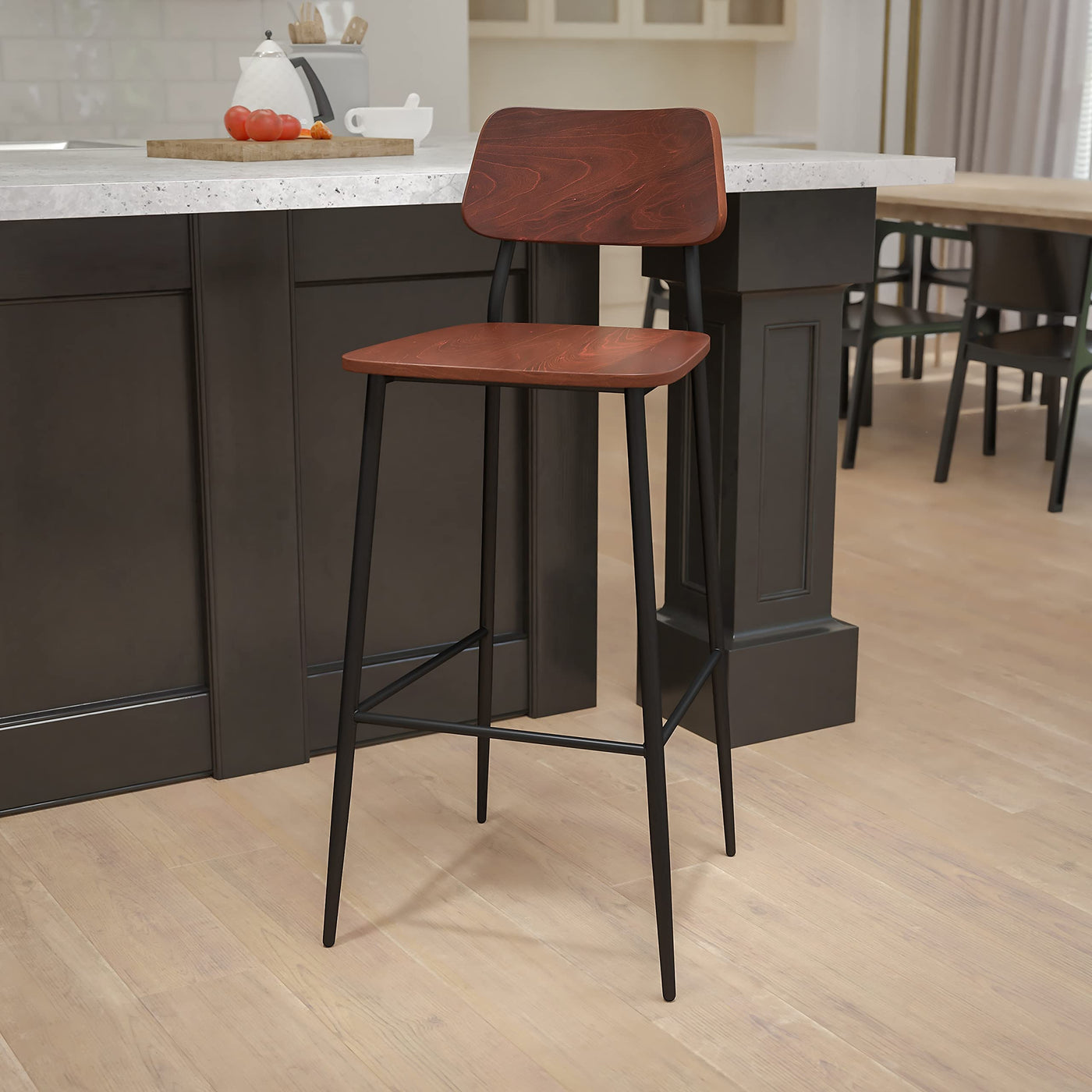When Furnishing Your Establishment You Need Seating That Can Change With Your Decor And You Won'T Be Disappointed With This Richly Hued Industrial Bar Stool. The Mixed Media Design Blends Seamlessly Giving This Metal Bar Stool An Up To Date Appearance That Will Go From Modern Industrial To Rustic Farmhouse And Just About Everything In Between. This Solid Restaurant Dining Barstool Boasts An Easy To Clean Mahogany Finish, Which Is An Important Aspect When It Comes To A Business. Although Designed To Withstand The Daily Rigors In The Hospitality Industry, This Versatile Stool Will Also Provide A Warm And Inviting Quality To Your Home. Use This Commercial Grade Barstool Around The Pub Height Table In Your Restaurant, Your Kitchen Island Or Anywhere You Want Chic, On-Trend Seating. The Durable Steel Frame Is Stabilized With A Support Bar That Includes A Footrest That Promotes Good Posture And Relieves Pressure From The Legs. This Wooden Stool Arrives Fully Assembled For Quick And Easy Setup. Plastic Floor Glides Help Protect Your Floors And Ensure Smooth Gliding. The Simple Style Of This Rustic Barstool Will Highlight Any Space In Your Home Or Business.