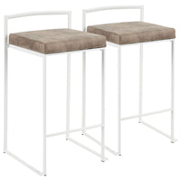 Fuji Contemporary Stackable Counter Stool In White With Brown Cowboy Fabric Cushion By Lumisource - Set Of 2