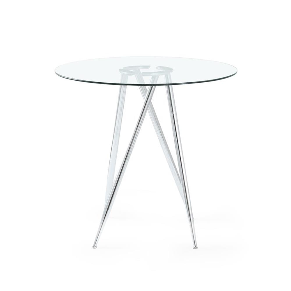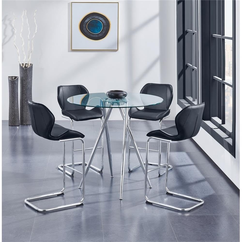 This Simple And Stylish Bar Table Boasts Lean Chrome Metal Legs With A Round Tempered Glass Top Designed To Cater To Your Dining Needs.