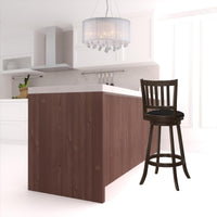 Comfort And Design Come Together Nicely In This Set Of Two 29 Black And Espresso Faux Leather And Solid Wood Swivel Bar Height Bar Chairs With Footrest. A Espresso Solid Wood Frame Is Finished Off With A Black Faux Leather Seat That Is The Epitome Of Quality Construction And Design. A Full Back Mixed With A Round Shaped Seat Design Makes This Chair Both Comfortable And Fashionable. Designed With A Footrest For Comfort And Convenience. Features. Assembly Required Illustrated Instructions And All Hardware Are Provided For Convenience Additional Tools May Be Needed. Features Swivel Function That Allows User A Wide Range Of Mobility. Product Dimensions 1975 Inches W X 2025 Inches D X 44 Inches H. Round Seats Are Upholstered In A Black Leatherlook Fabric And Padded For Comfort. Set Of 2 Barheight Barstools That Swivel 360 Degrees. Supportive, Curved Backrests With A Slatback Design, Sturdy Solid Wood Legs, And Convenient Footrests Are In A Darkbrown Espresso Finish. Set Of 2Specifications. Color Espresso. Size 17.5W X 18.25D X 44H. Seat Style Round. Number Of Stools Included 2. Seat Color Black. Frame Material Solid Wood. Seat Material Faux Leather. Seat Manufactured Wood Type Mdf. Wood Species Rubberwood. Upholstered Yes. Seat Back Type Full Back. Swivel Yes. Footrest Included Yes. Seat Height Floor To Seat 29. Seat Width Side To Side 18.25. Weight Capacity 200. Frame Color Espresso. Room Kitchen. Bar Chair Type Bar Height. Material Solid Wood, Foam, Mdf, Veneer, Leatherlook. Style Transitional. Finish Espresso. Country Of Origin Malaysia. Item Height 44 Inches. Item Width 17.5 Inches. Item Depth 18.25 Inches. Weight 37 Lbs
