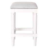 27 In. Gray Antiqued White Solid Wood Backless Counter Height Bar Chair With Footrest With This 27Inch Gray And Antiqued White Solid Wood Backless Counter Height Bar Chair With Footrest You Can Add Design And Extra Seating To Your Space. The Gray Upholstered, Manufactured Wood Seat Of This Stool Is A Nice Contrast To The High Quality, Antiqued White Solid Wood Of The Base. The Square Shape Of The Seat Give This Backless Chair A Fresh And Fashionable Look. Designed With A Footrest For Comfort And Convenience. 25.75Inch H X 16Inch W X 16Inch D. Features. High Quality And Good Looking Counter Height Bar Stool. Includes A Footrest For Convenience And Leg Support. Features A Nonswivel, Square Shaped Stationary Seat. The Product Can Hold Up To 250Lbs. Features Fine Detailing Including Nailhead Trim. Open Up The Site Line And Give The Impression Of More Space With This Backless Designspecifications. Color Gray, Antiqued White. Style Casual. Material Solid Wood. Size 27. Weight Capacity 250 Lbs. Country Of Origin Vietnam. Dimension 25.75 H X 16 W X 16 D. Weight 21 Lbs