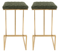 Leisuremod Quincy Quilted Stitched Leather Kitchen Counter Bar Stools With Gold Metal Frame Set Of 2 (Olive Green)