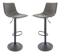 Leisuremod Tilbury Modern Adjustable Height Bar Stool Kitchen Island Stools With Footrest & 360-Degree Swivel Set Of 2 (Grey)