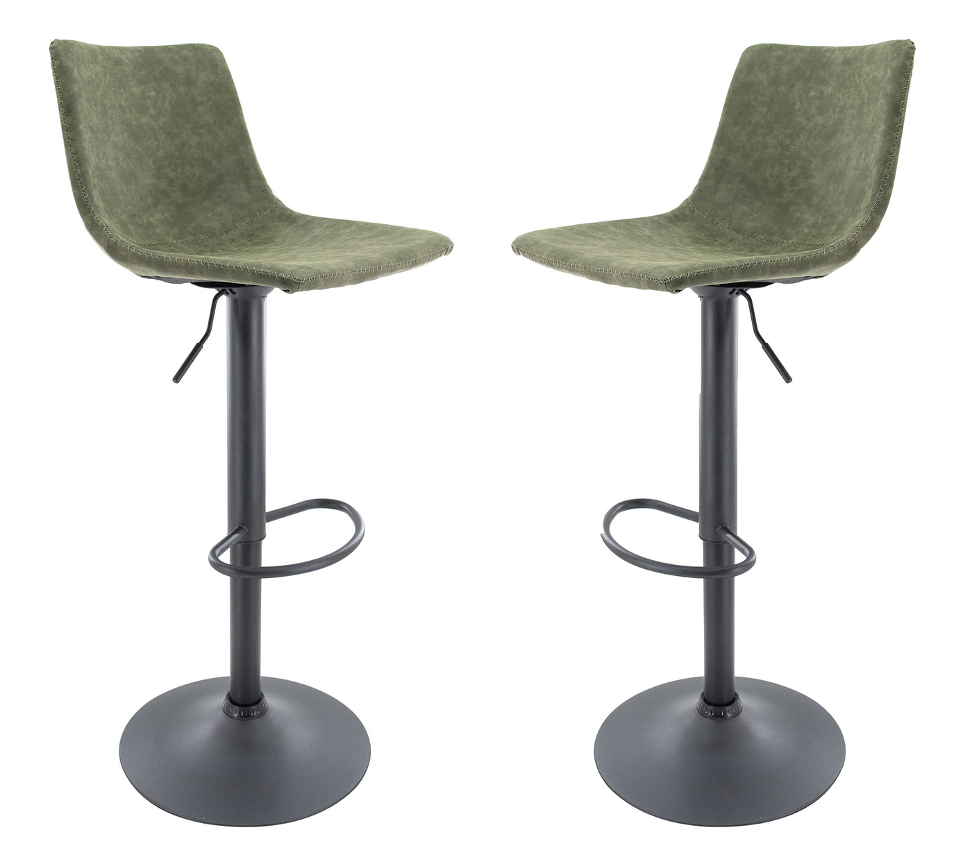 Leisuremod Tilbury Modern Adjustable Height Bar Stool Kitchen Island Stools With Footrest & 360-Degree Swivel Set Of 2 (Olive Gr
