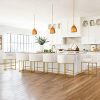 Lue Bona 27'' H Counter Height Bar Stools Set Of 6, Modern Barrel Counter Stools With Backrest And Arms, Gold Metal Frames, Line