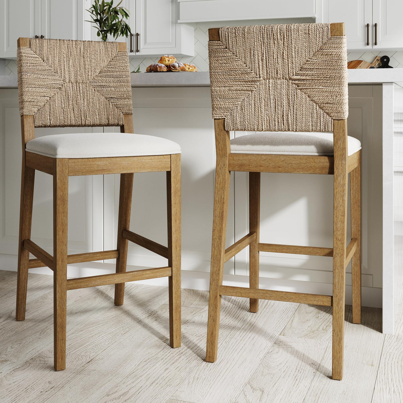 The Beacon Bar Height Chair Will Surely Make Your Bar Area Cozy And Inviting! The Seat Is Wrapped In A Soft, Textured Cream Boucle Fabric, While The Backrest Is Crafted From Natural Woven Seagrass - The Perfect Combination For The Ultimate Boho Vibe Your Bar Or Kitchen Island Needs. This 29 Inch Bar Height Stool Is Unique And Charming, But It'S Not All That. The Solid Wood Frame Gives It The Stability And Function Of A Durable Bar Stool That Will Last For Years. The Beacon Upholstered Bar Stool With Back Is Your Perfect Companion For A Quick Bite, Coffee Chat With Family, Or Just A Quiet Moment With A Book.Nathan James Is The Furniture Company Built For This Generation. You Don'T Need To Spend A Fortune To Get Quality Design-First Furniture, And When We Say Easy Assembly, We Mean It. Our Guarantee Is Our Word. Your Purchase Is Backed By A 100% Money-Back Guarantee. If You Have Any Quality Issues, Contact Us, And We Will Send You A Replacement Immediately-No Questions Asked.