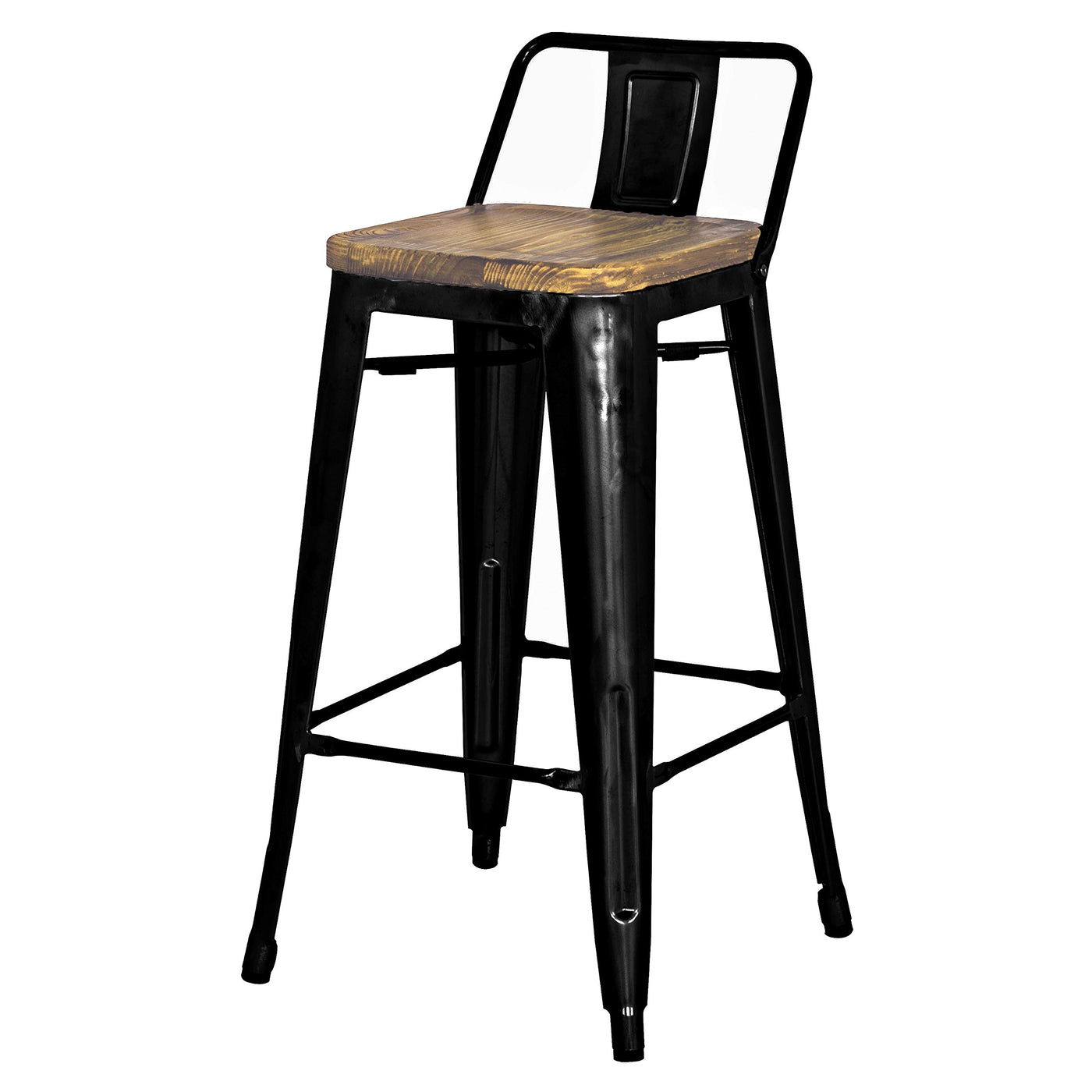 New Pacific Direct Metropolis Metal Low Back Bar Stool 30" Wood Seat,Indoor/Outdoor Ready,Black,Set Of 4