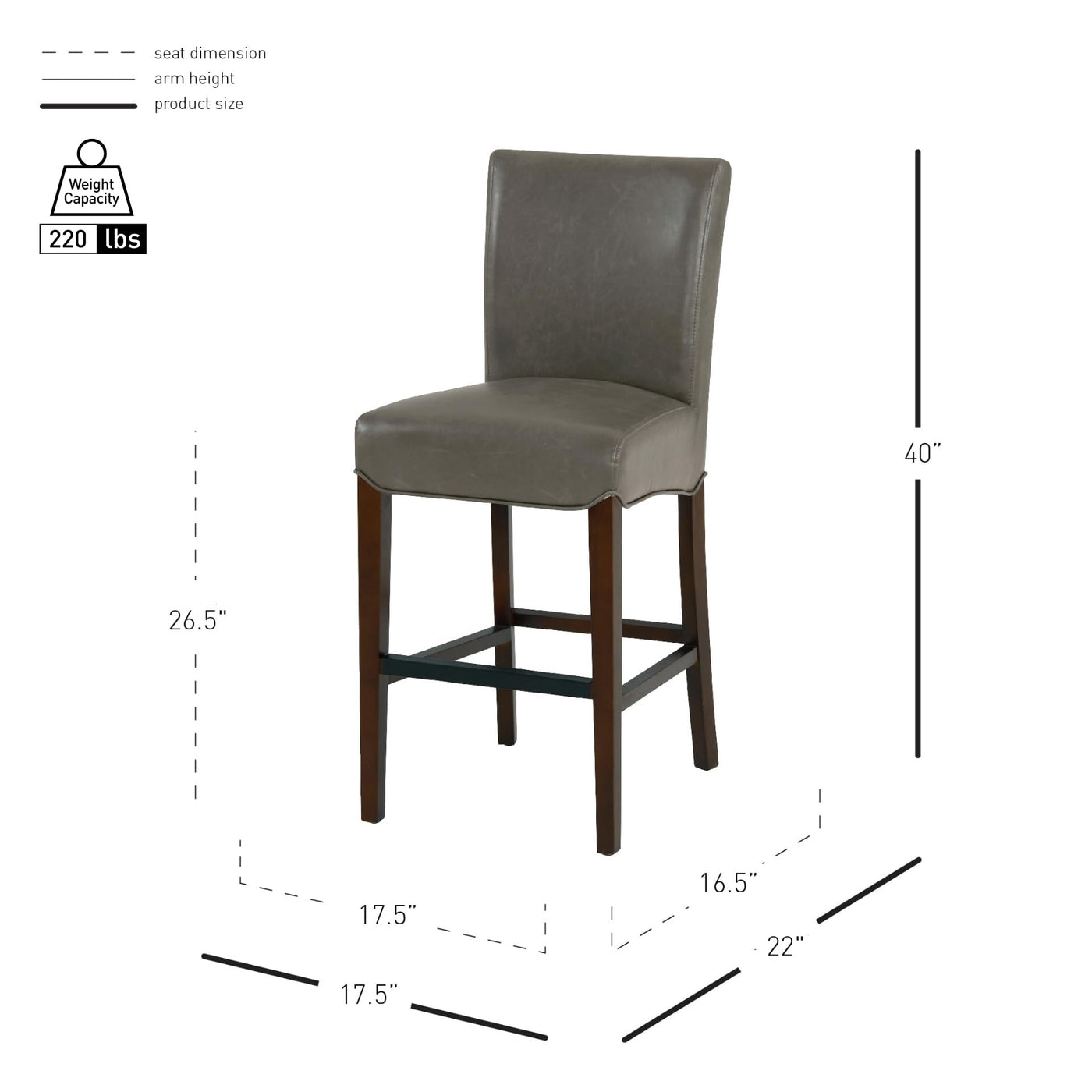New Pacific Direct Milton Bonded Leather Counter Stool 26",Brown Legs,Vintage Gray,Fully Assembled