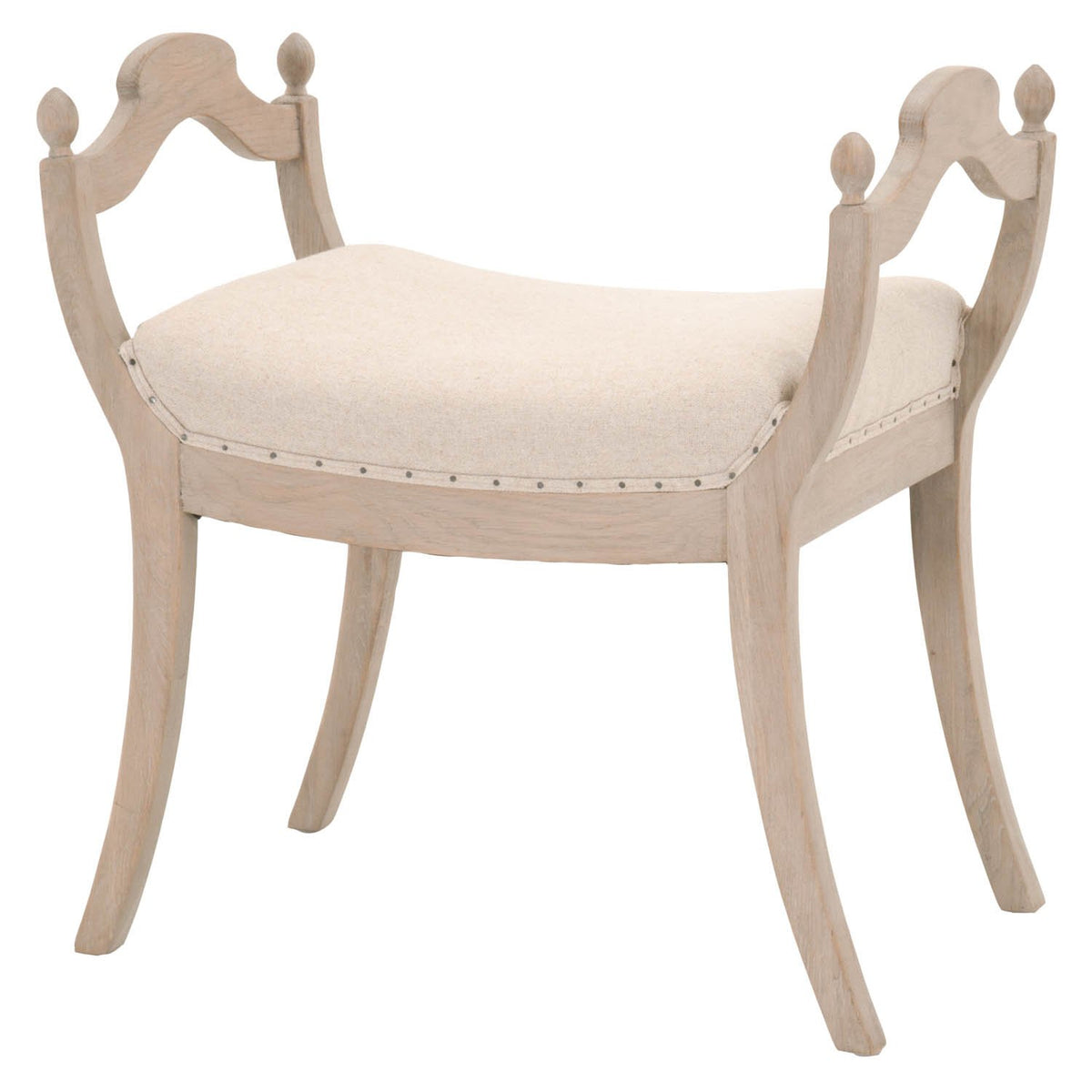 Descriptionorient Express Furniture - Transitional Style Stool Featuring Solid Oak Frame And Linen Upholstery With Black Nail Tack Detail.