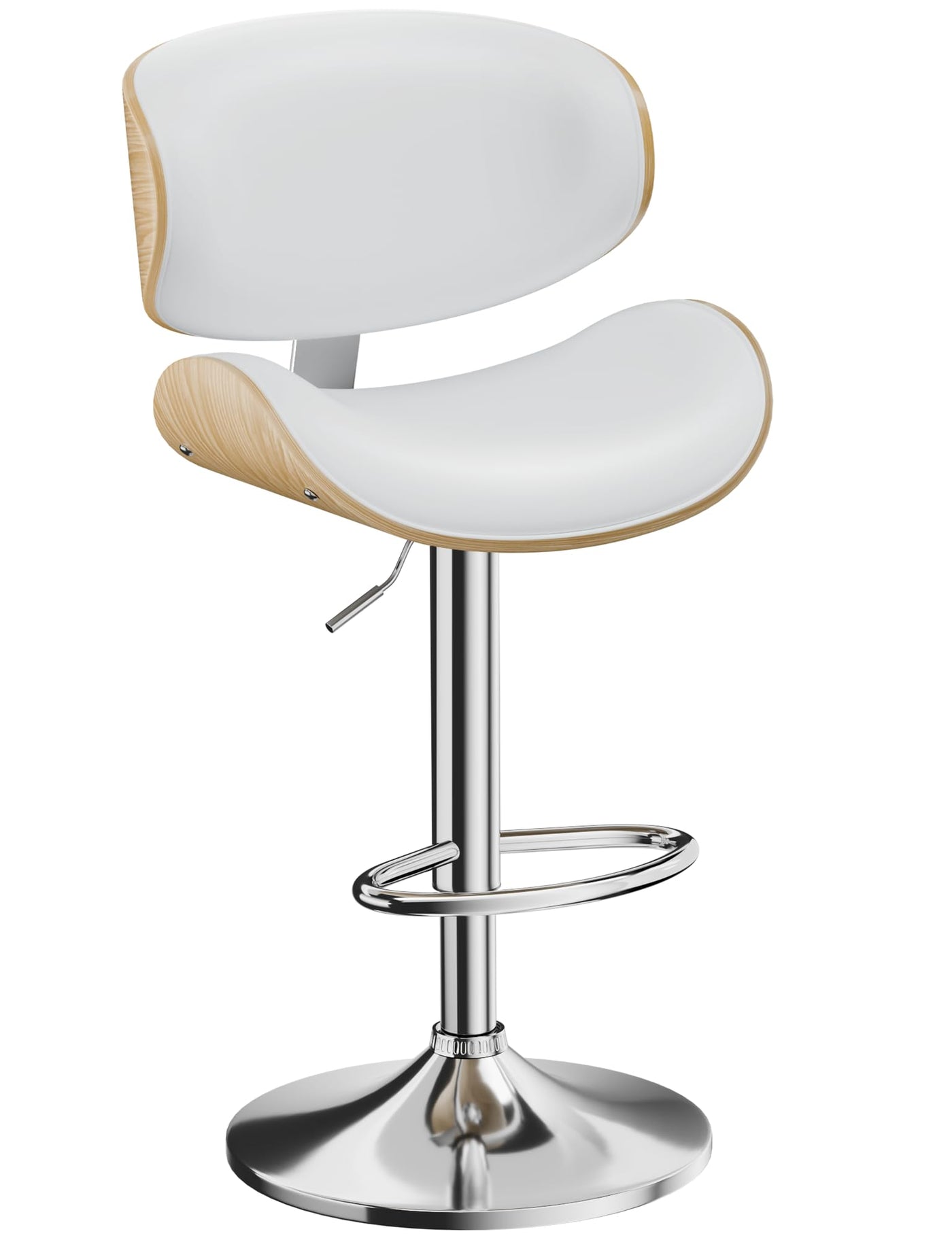 Yafiti Swivel Bar Stools For Kitchen Counter, Adjustable Bentwood Barstools, Modern Pu Leather Upholstered Bar Chair With Back A