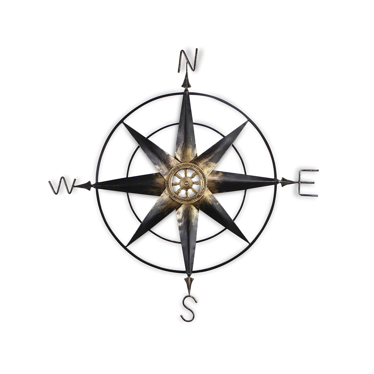Features. Large elegant wall Decor compass. Black Metal Wall Decor Compass with Gold Center Accents. This will make sure it will fit your house deisgnSpecifications. Height 39 in. Width 382 in. Depth 17 in. Material Black Metal