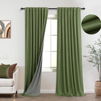 Koufall Office Curtains For Windows,Blackout Linen Vintage Olive Green Boho Curtains For Living Room 96 Inches Long